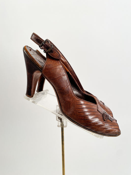 1940s Brown Leather Slingback Heels/ Size 7.5
