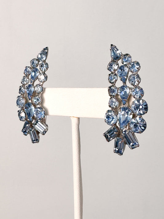 1950s Blue Rhinestone Statement Screw-back Earrings