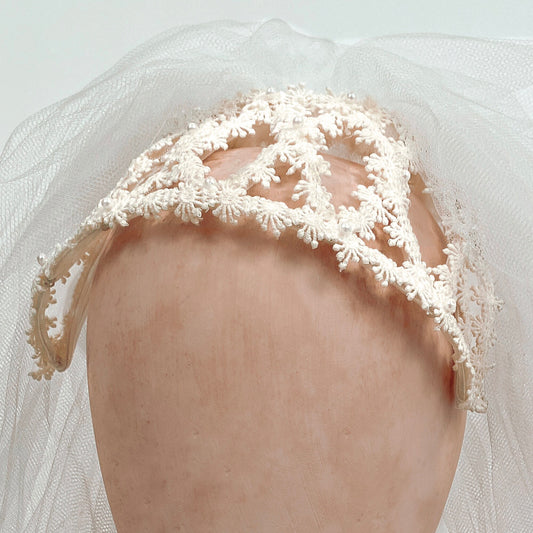 1960s Daisy Lace Caged Headpiece Wedding Veil / One Size