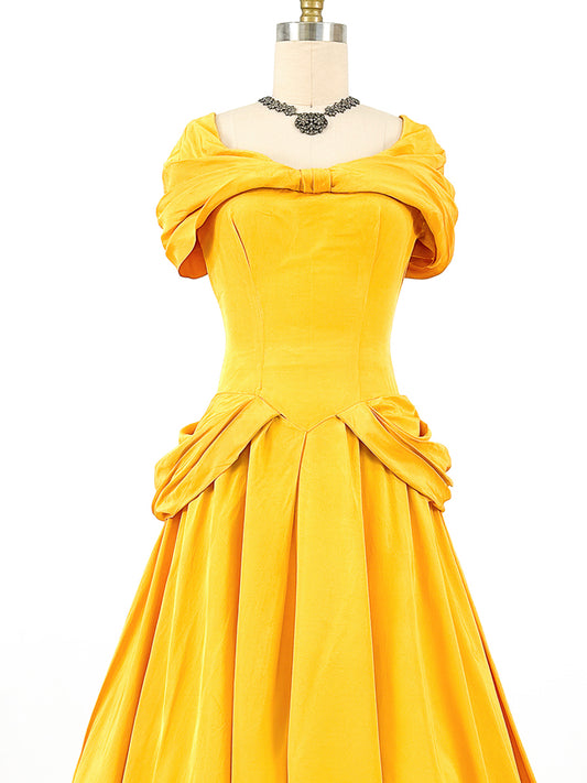 1930s 'Tale as Old as Time' Daffodil Satin Ballgown / Waist 24