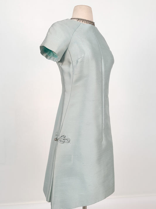 1960s Ice Blue Shantung Shift Dress / Waist 33