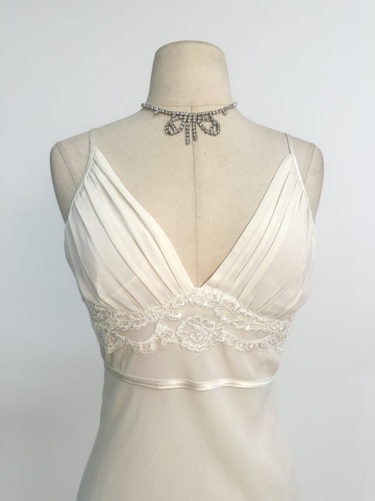 1990s Ethereal White Chiffon Slip Dress / Medium