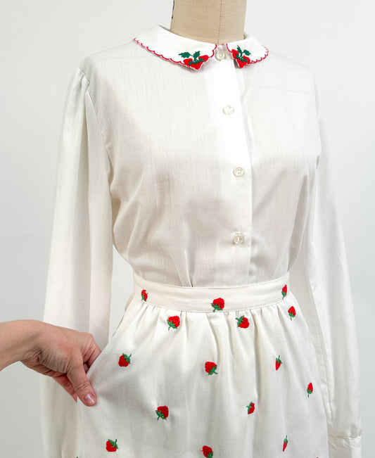 1960s Skirt with Embroidered Strawberries / Waist 26