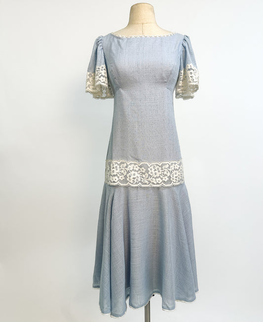 1960s Pale Blue Linen and Lace Dress / Bust 34-36"
