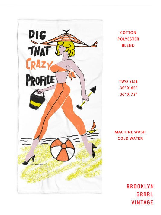 1960s Vintage Style Beach Towel / Room For One More / Retro Inspired Towel for Summer Days or Pool Designed by Brooklyn Grrrl Vintage