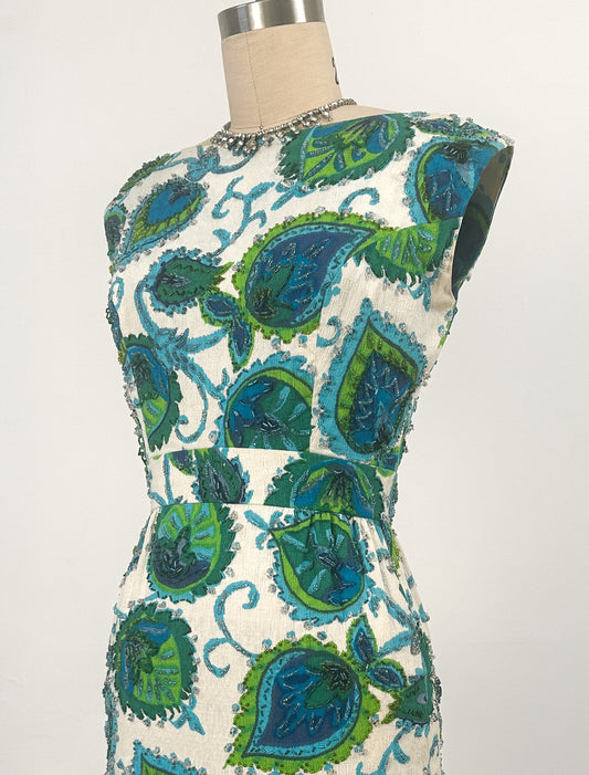 1960s Beaded Summer Dress by Malcolm Starr / Waist 26