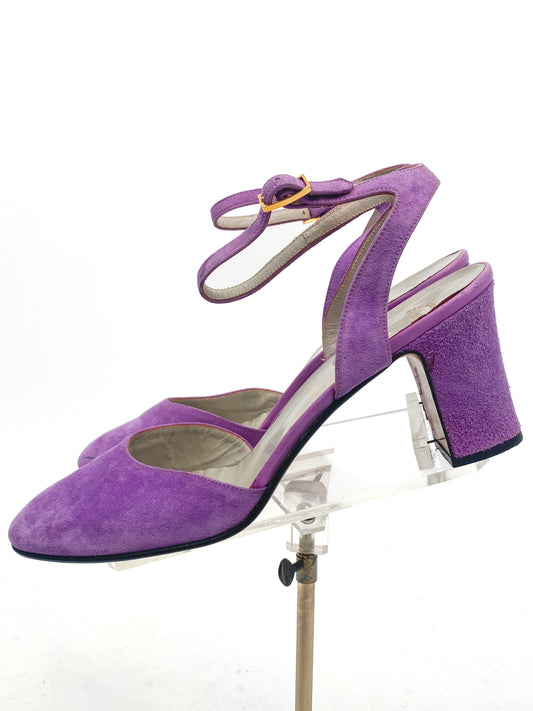 1960-70s Lilac Suede Pumps with Ankle Strap / Size 9.5 N