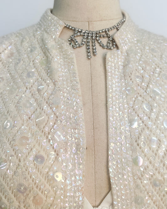 1950s Sparkling Iridescent Sequined Cardigan / Large