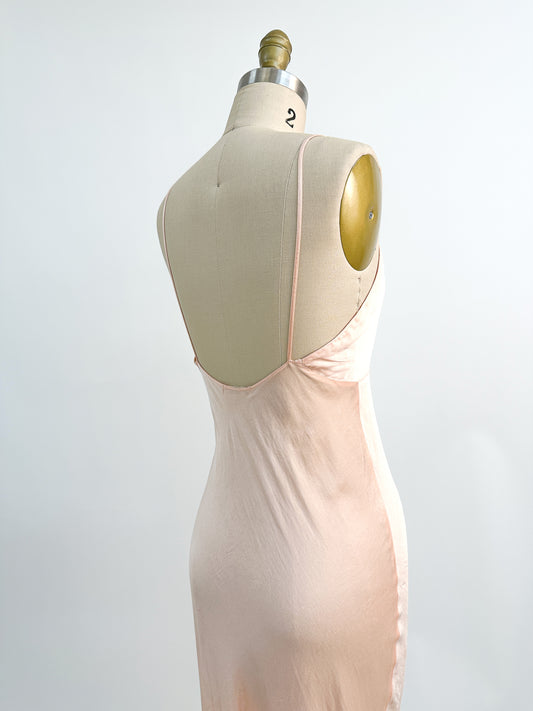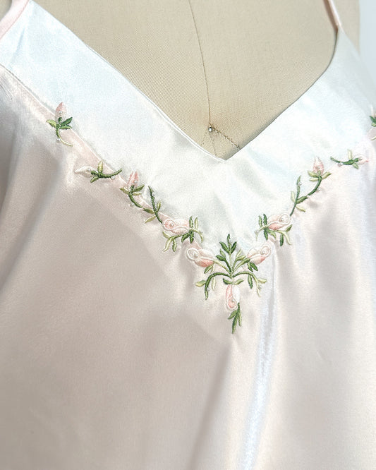1980s Silky Slip with Pearls and Roses Accents / Medium