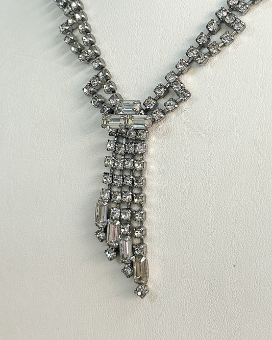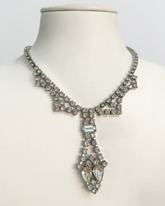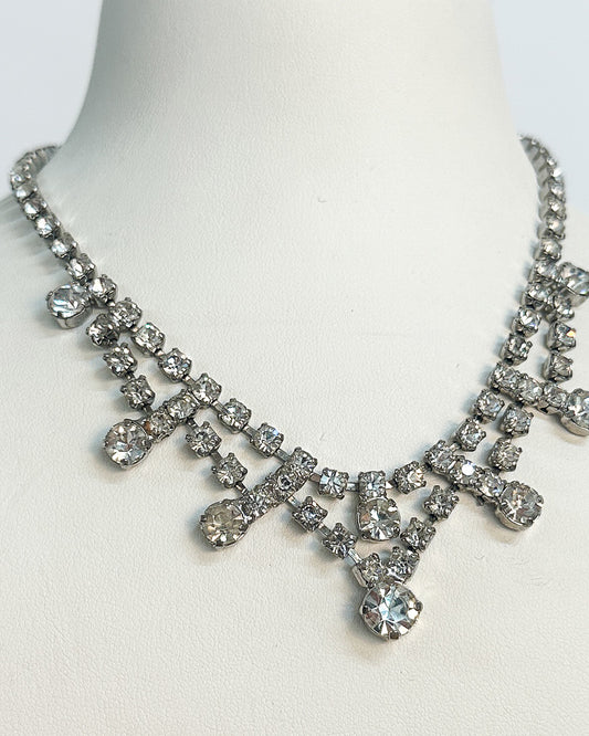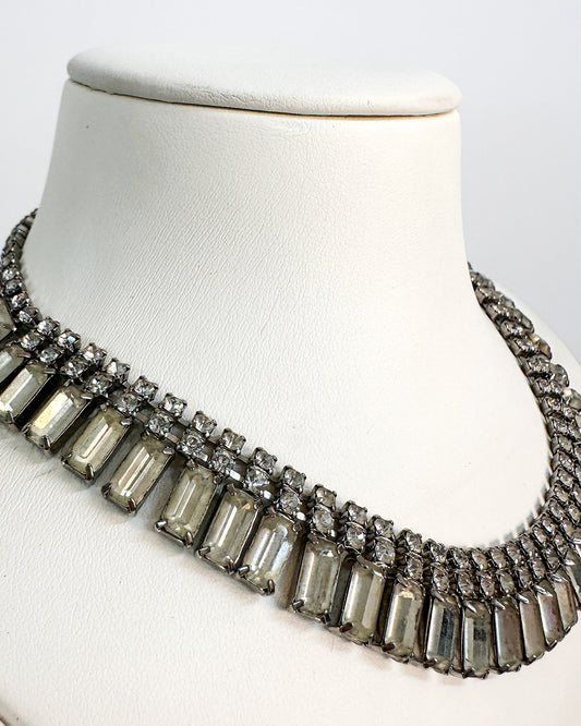 1940-50s Clear and Pale Blue Rhinestones Necklace
