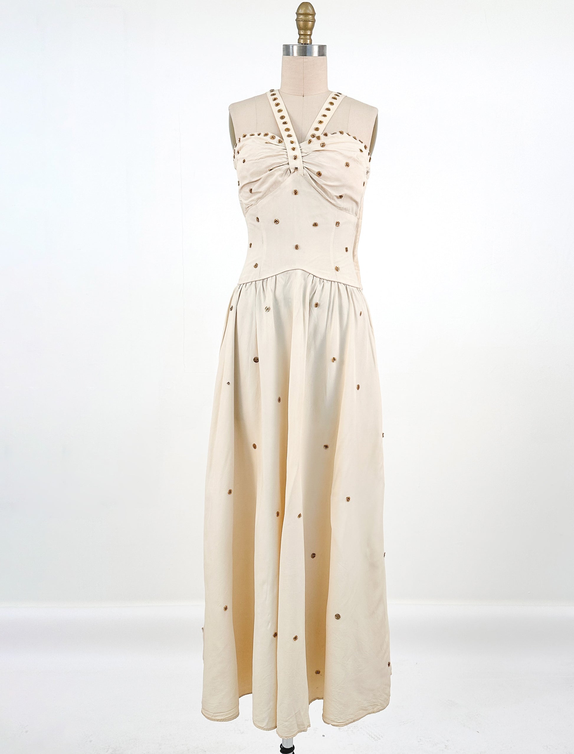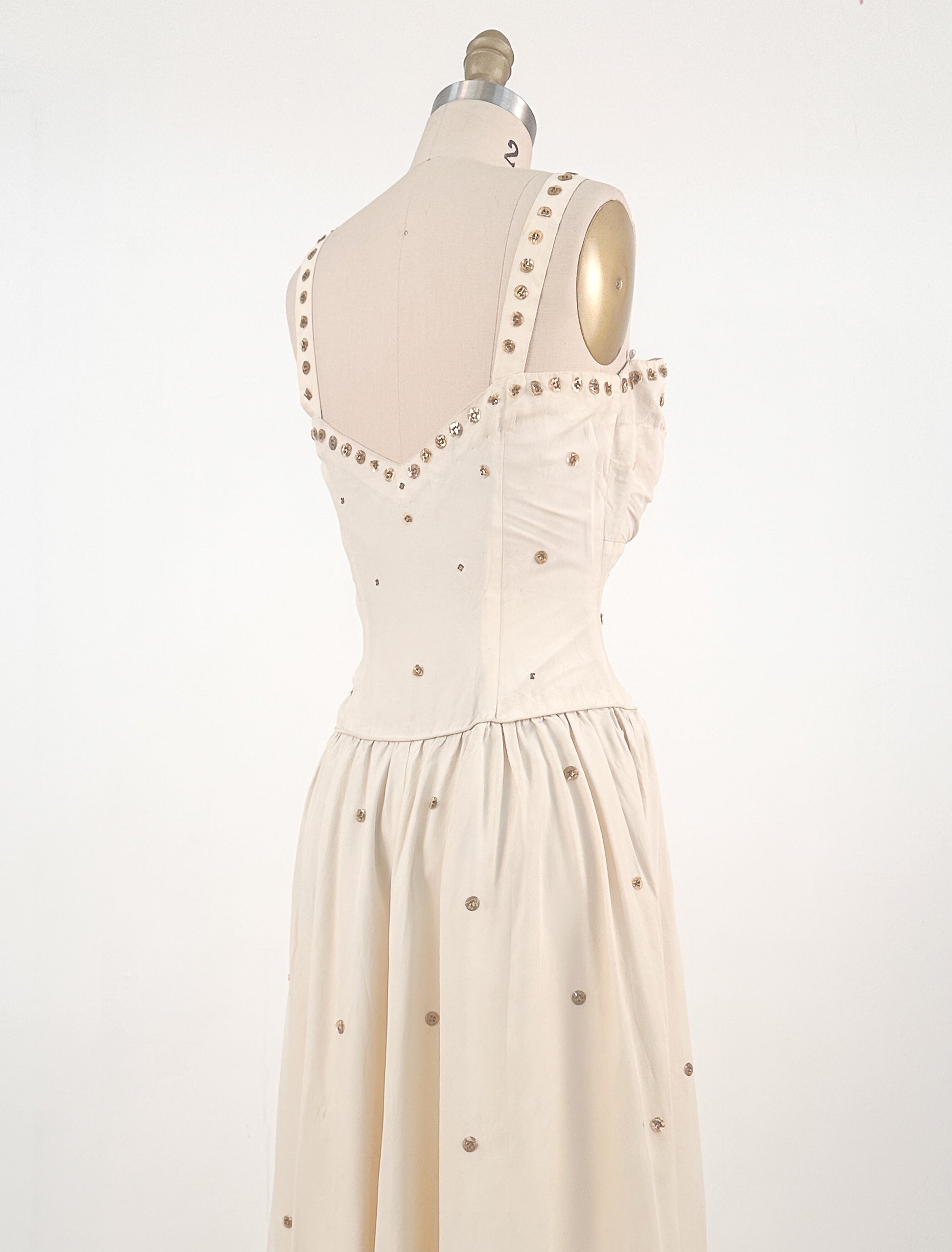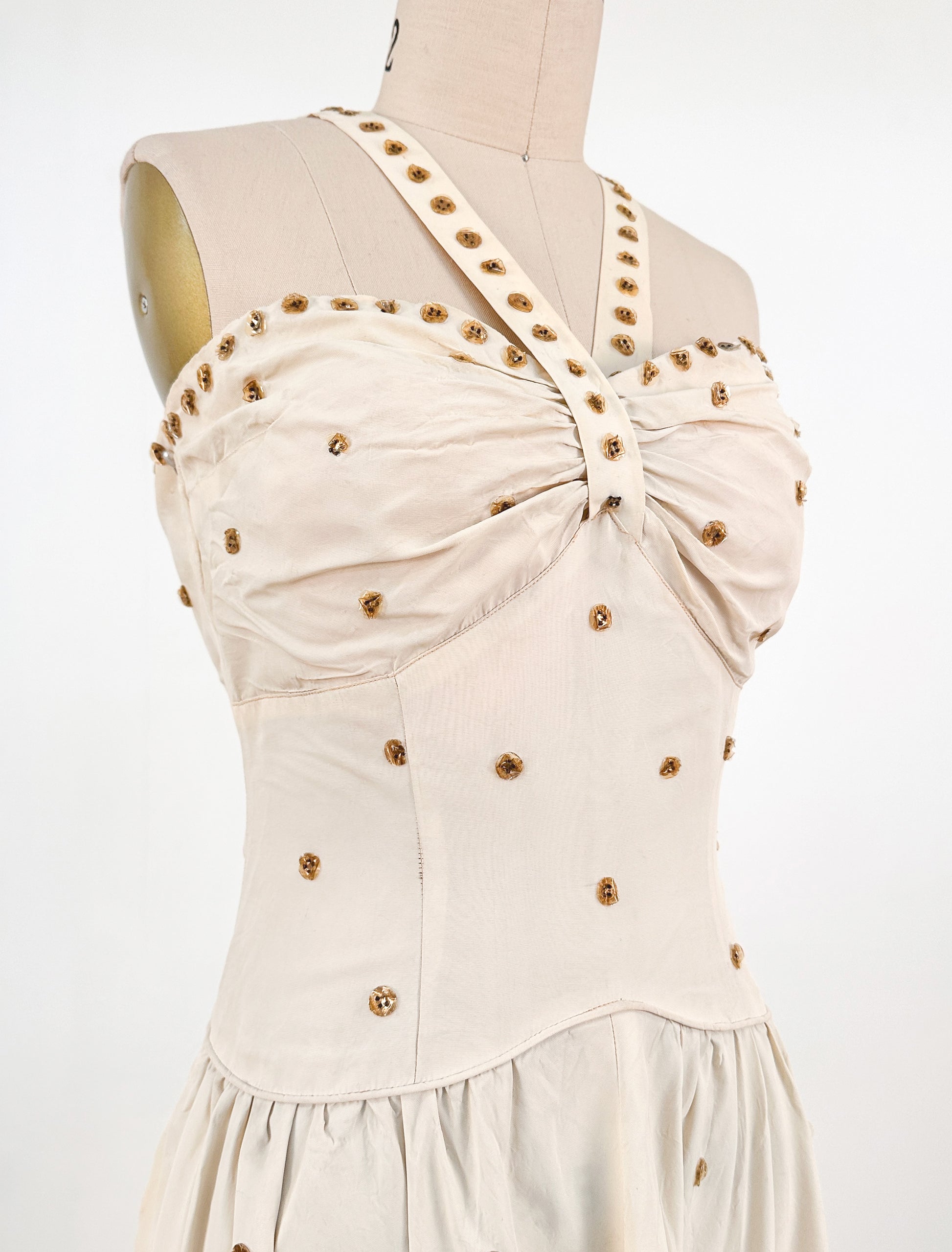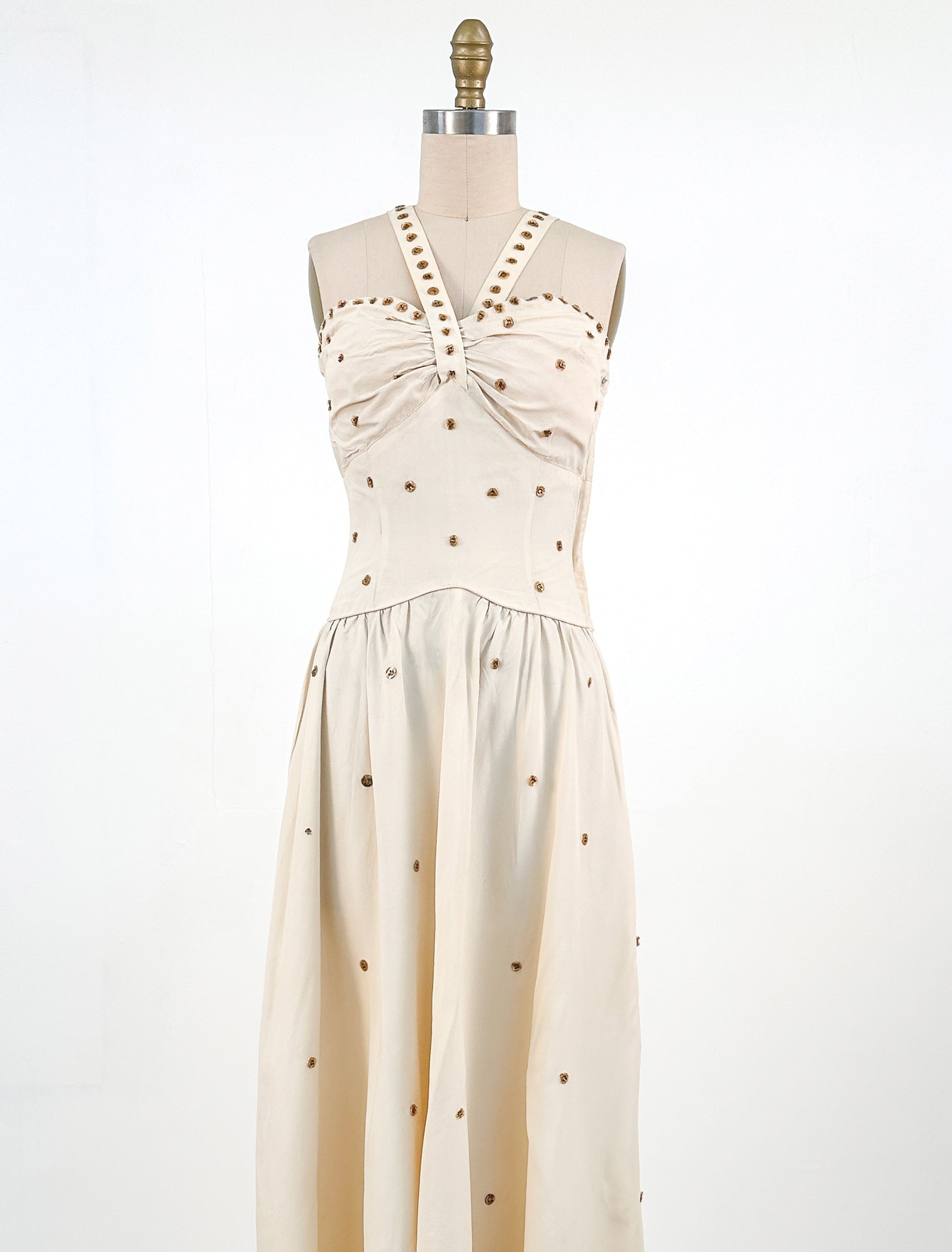 1940s Cream 'Old Hollywood' Dress with Bronze Sequins / Waist 26-28