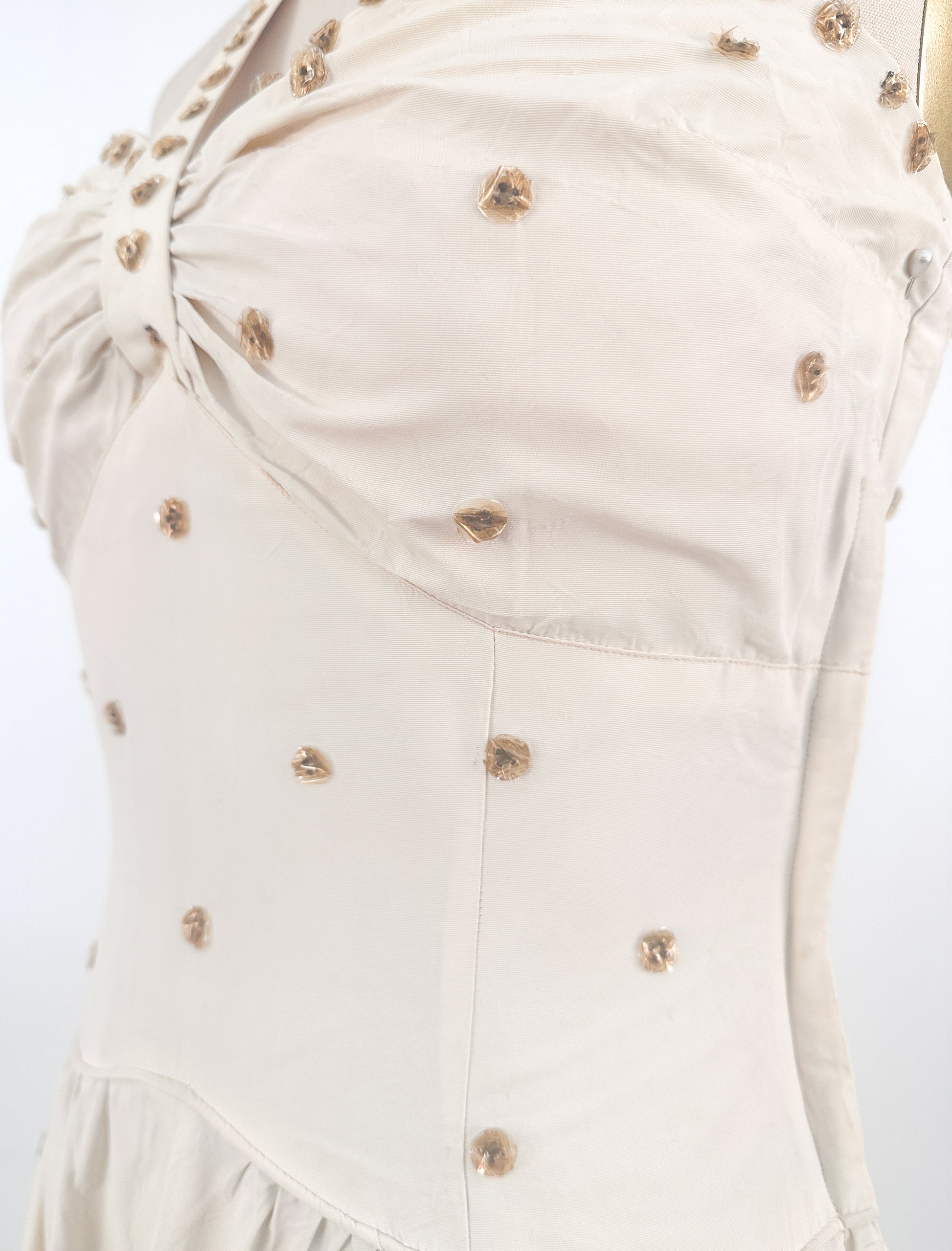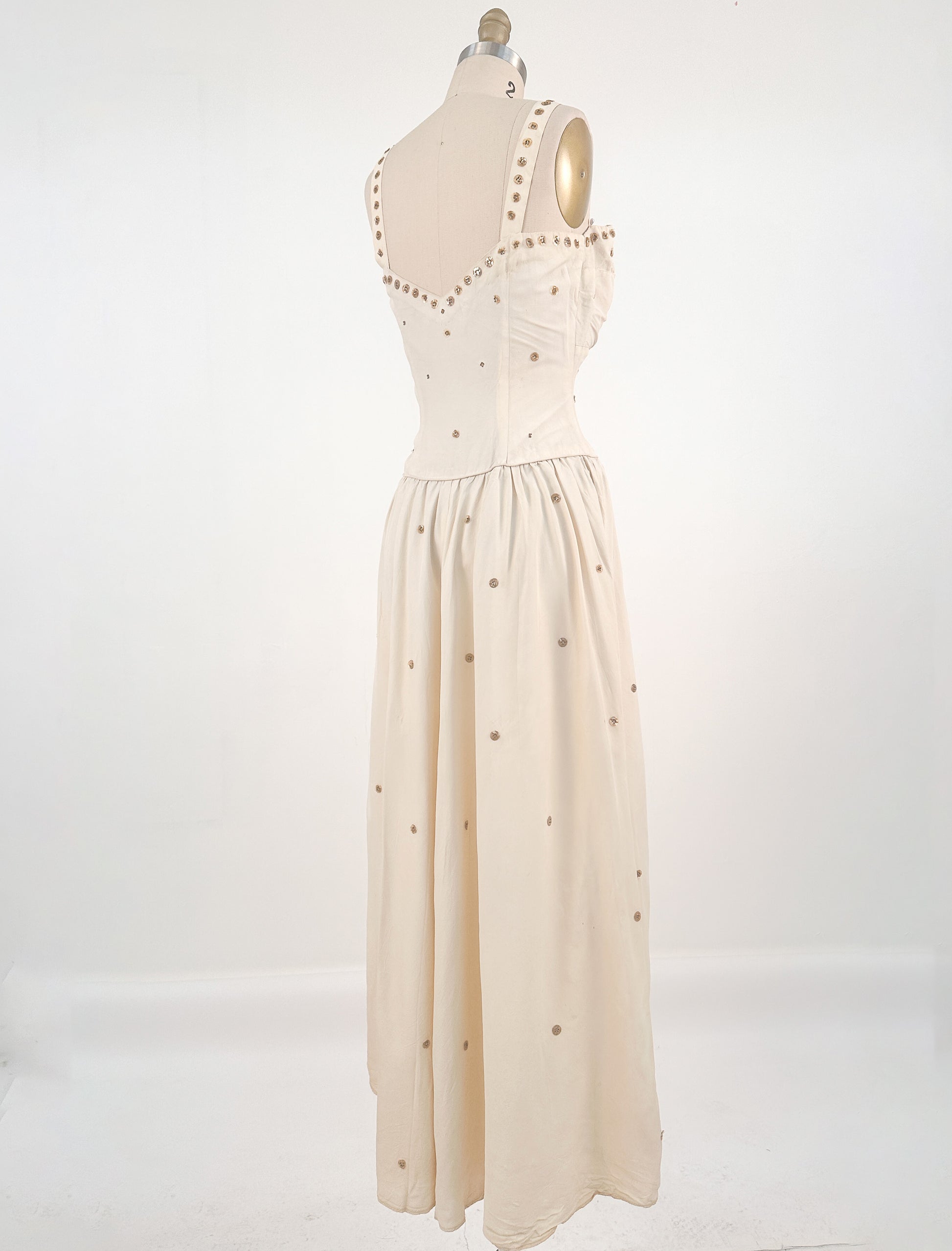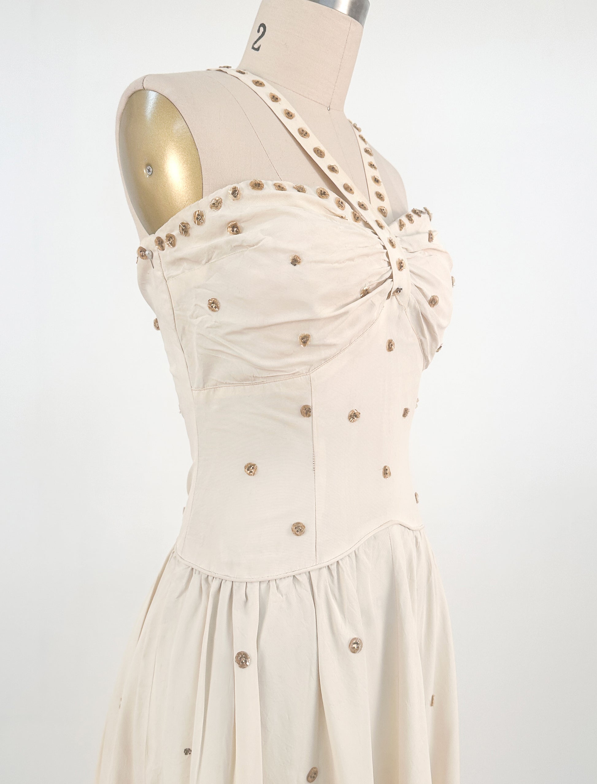 1940s Cream 'Old Hollywood' Dress with Bronze Sequins / Waist 26-28
