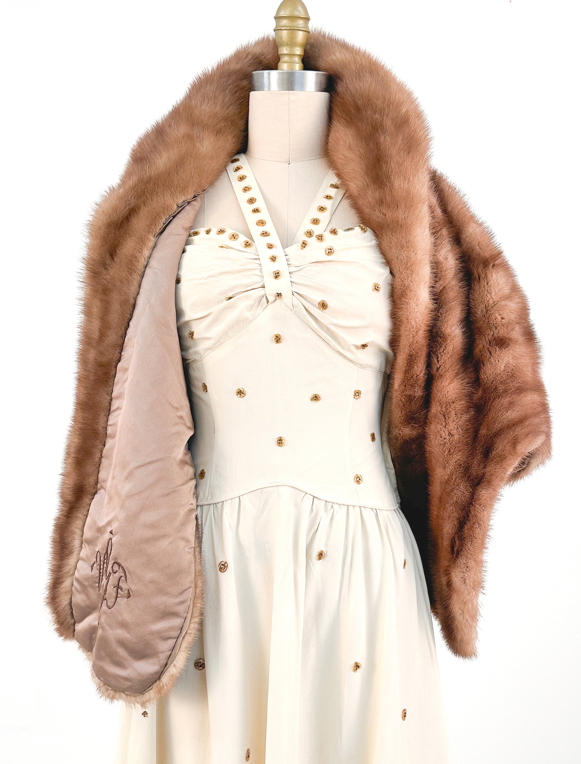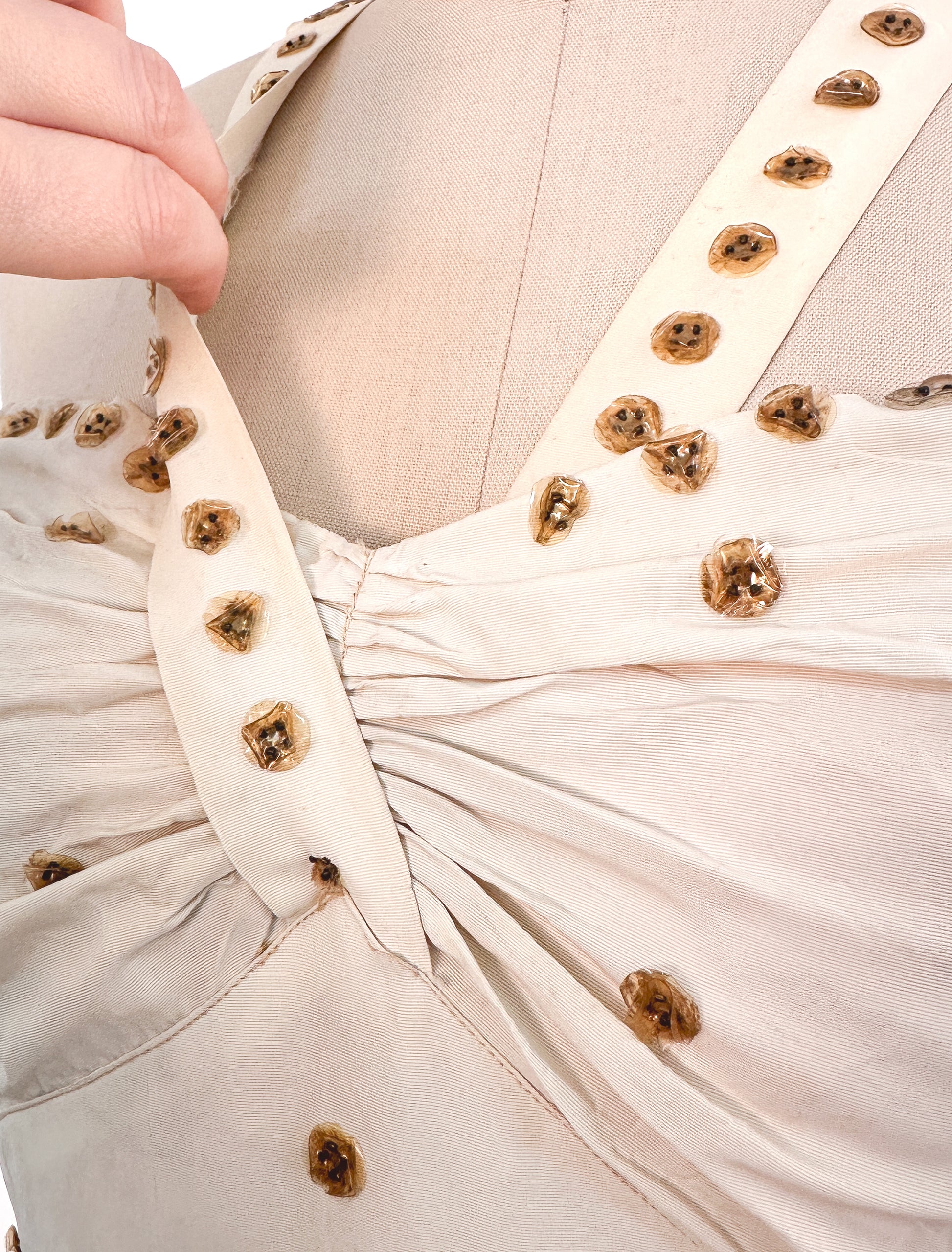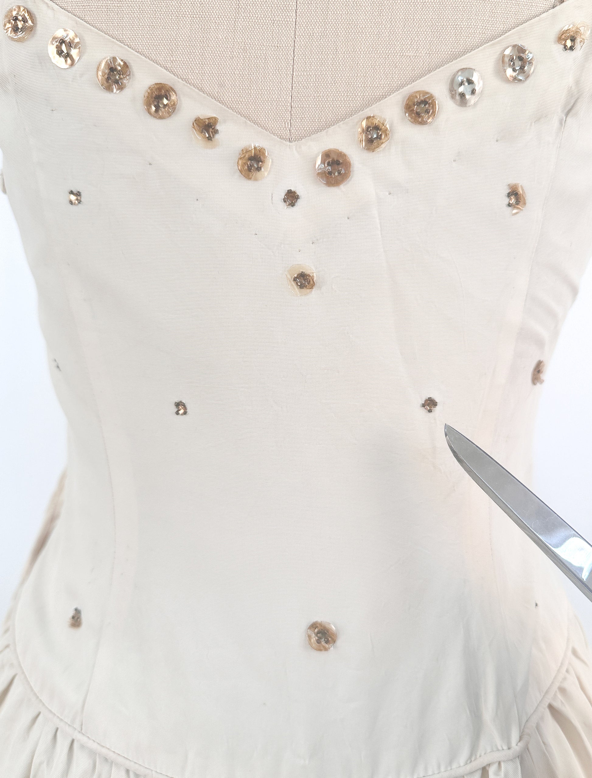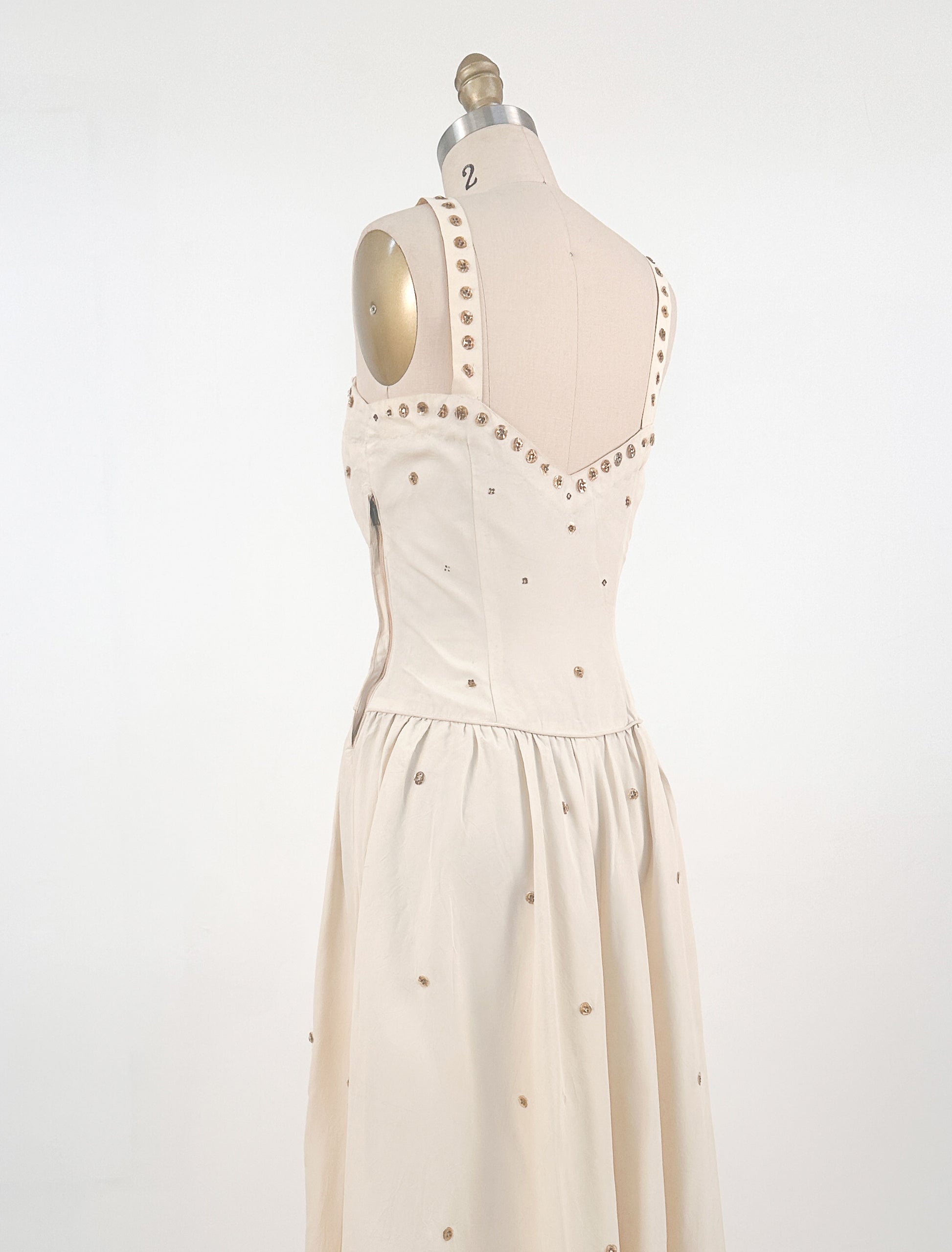 1940s Cream 'Old Hollywood' Dress with Bronze Sequins / Waist 26-28