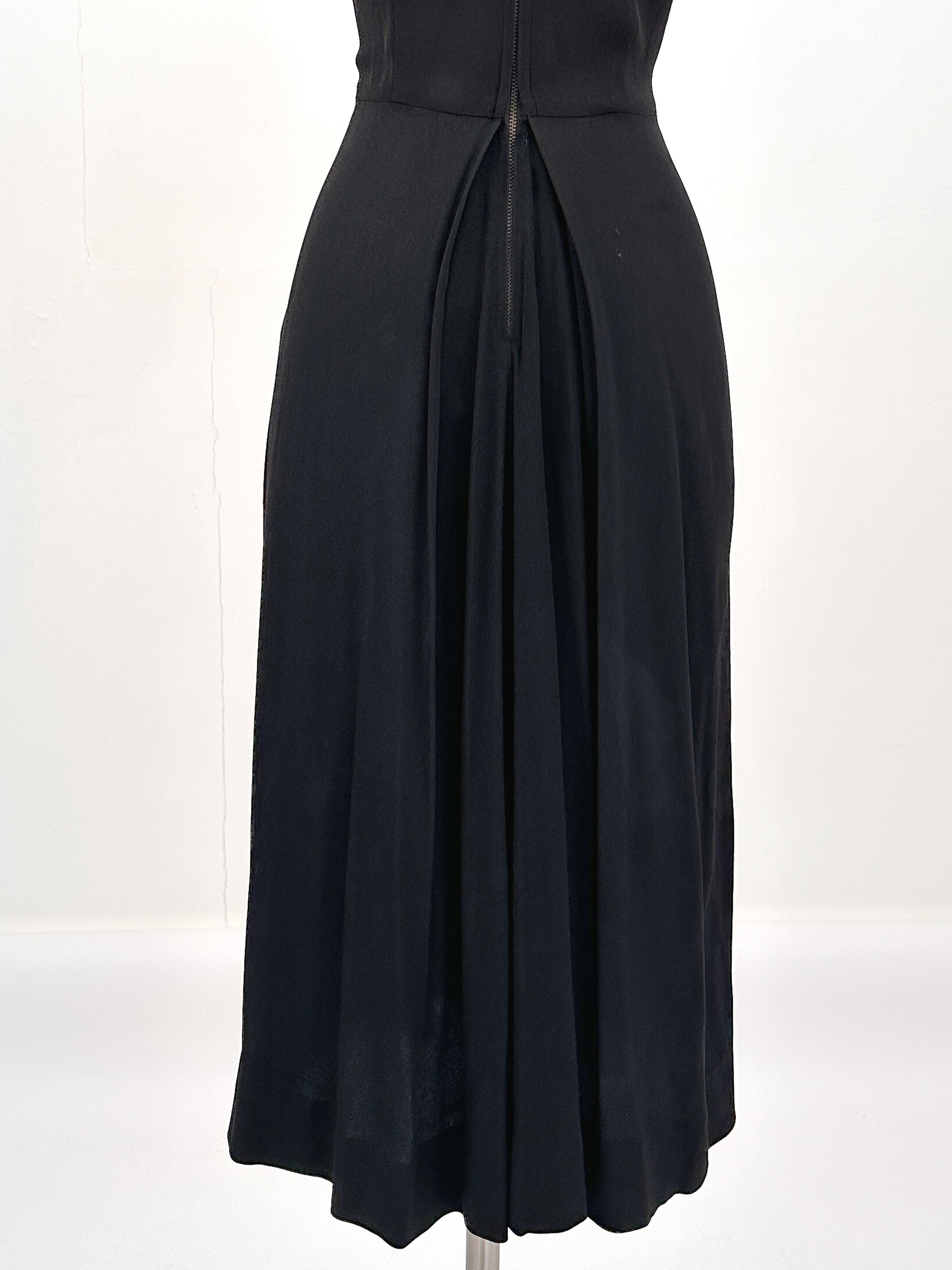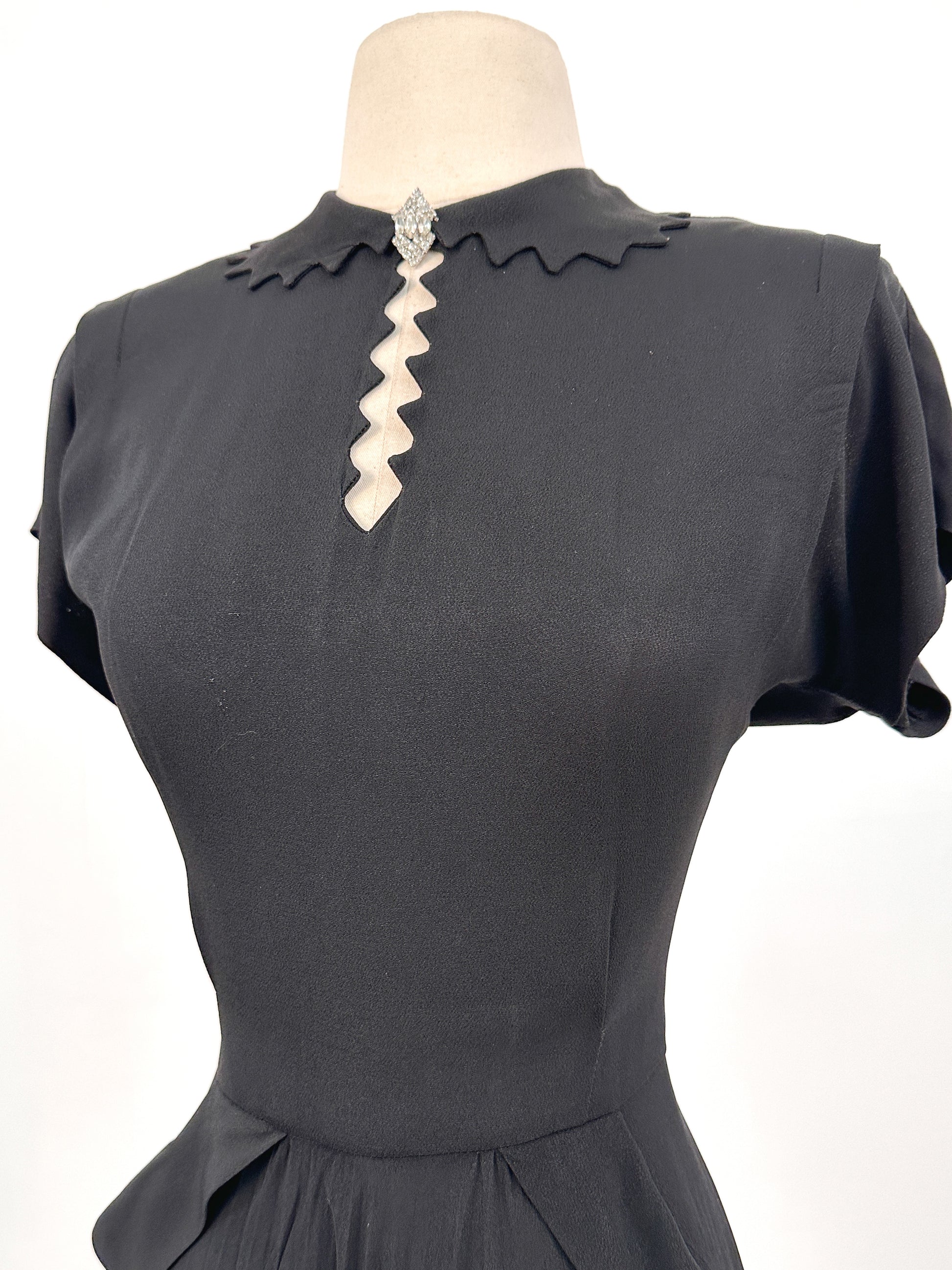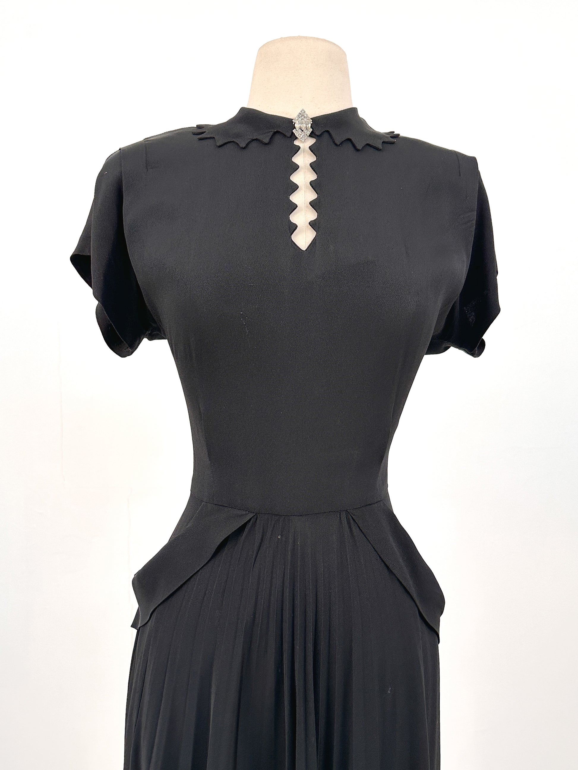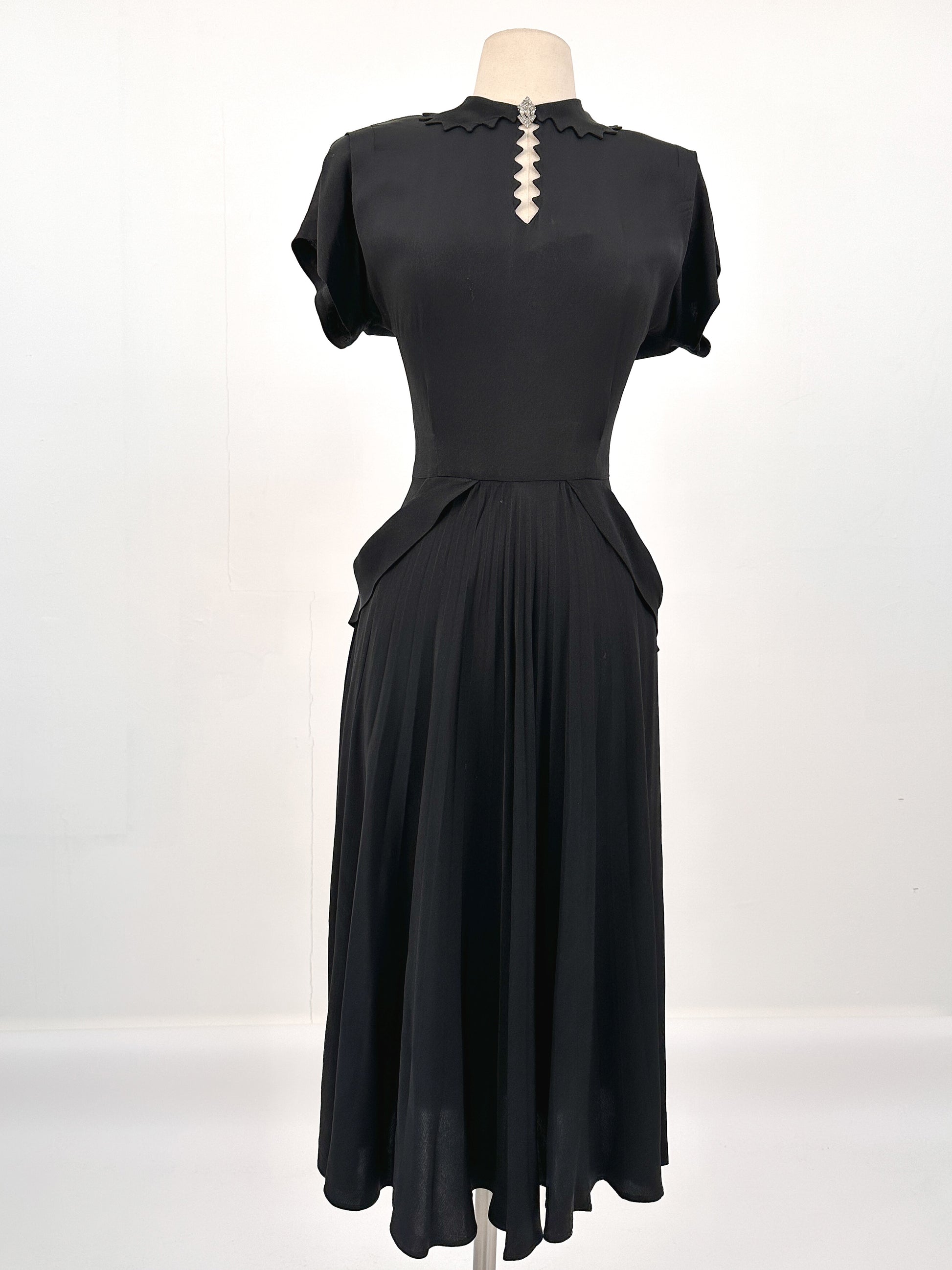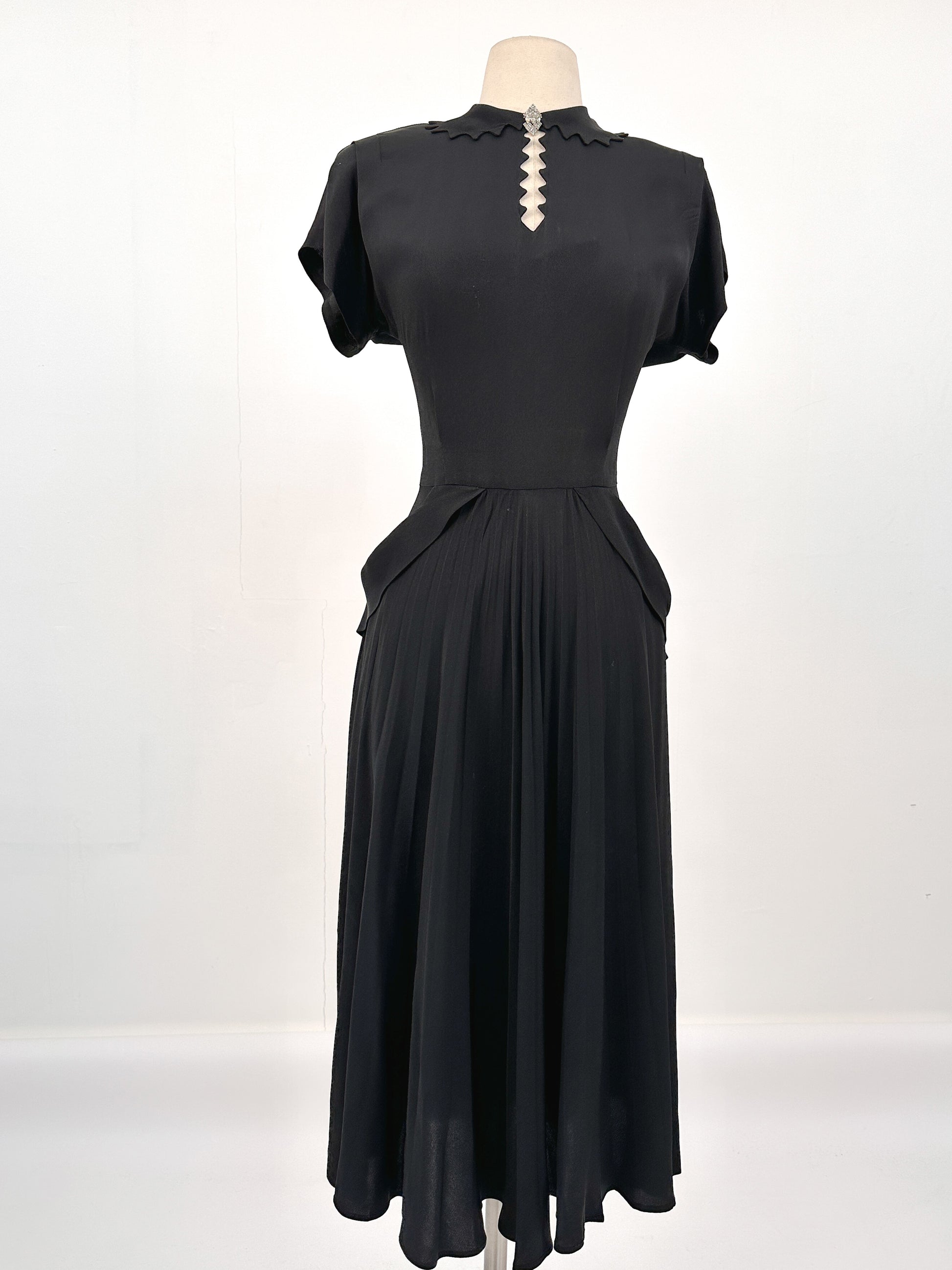 1940s Silky Crepe Rayon with Scalloped Collar and Pleated Skirt / Waist 28