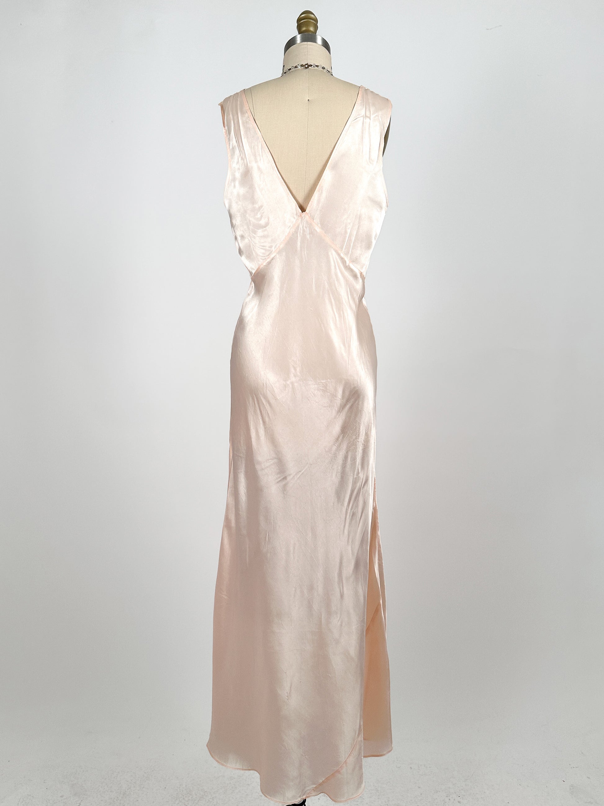 1930-40s Pale Pink Shimmering Nightgown with Lace / Waist 30