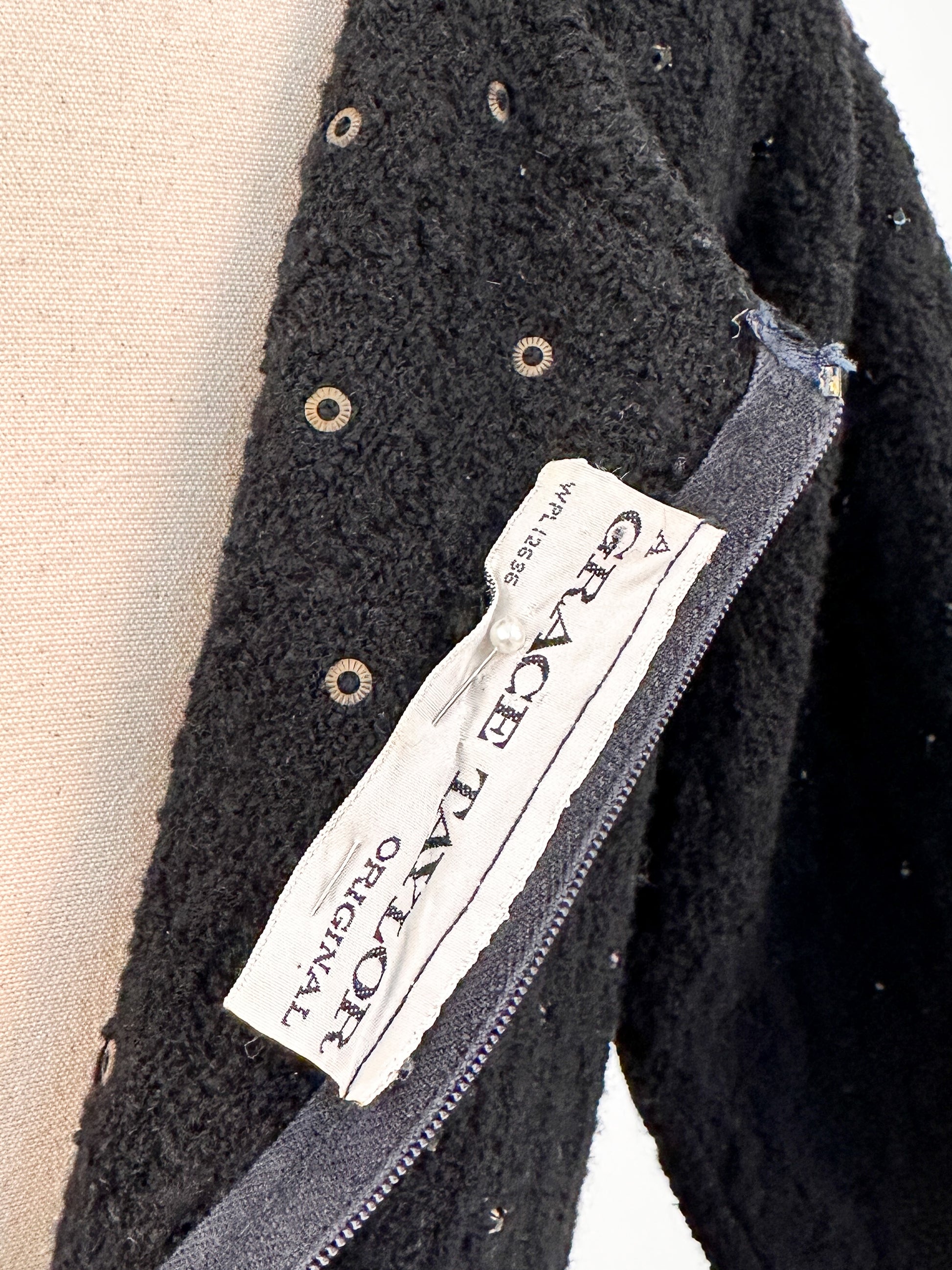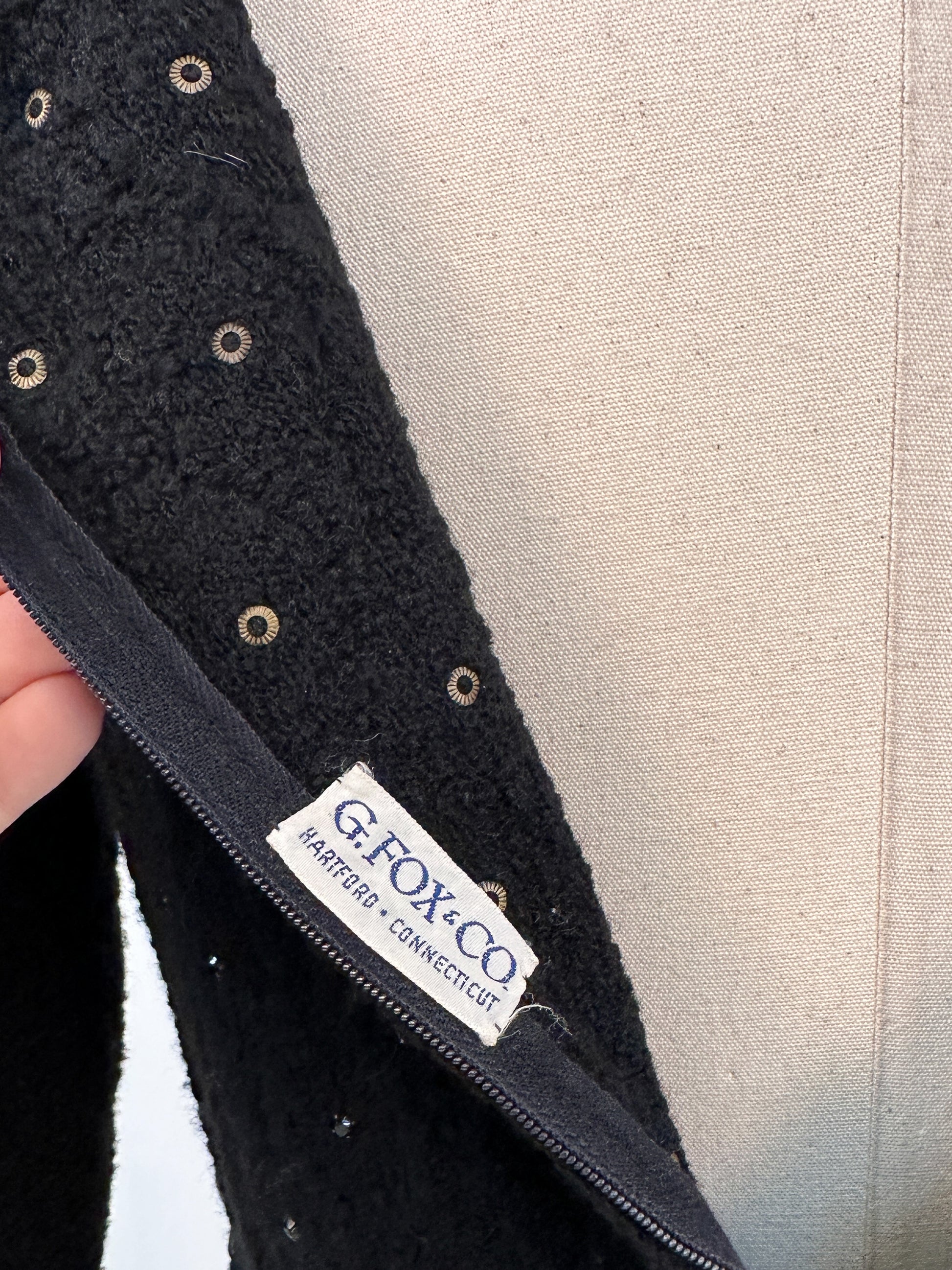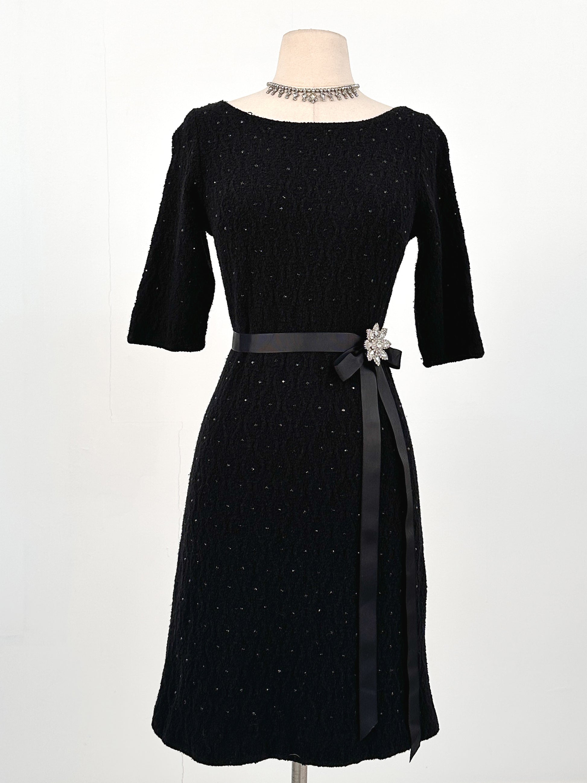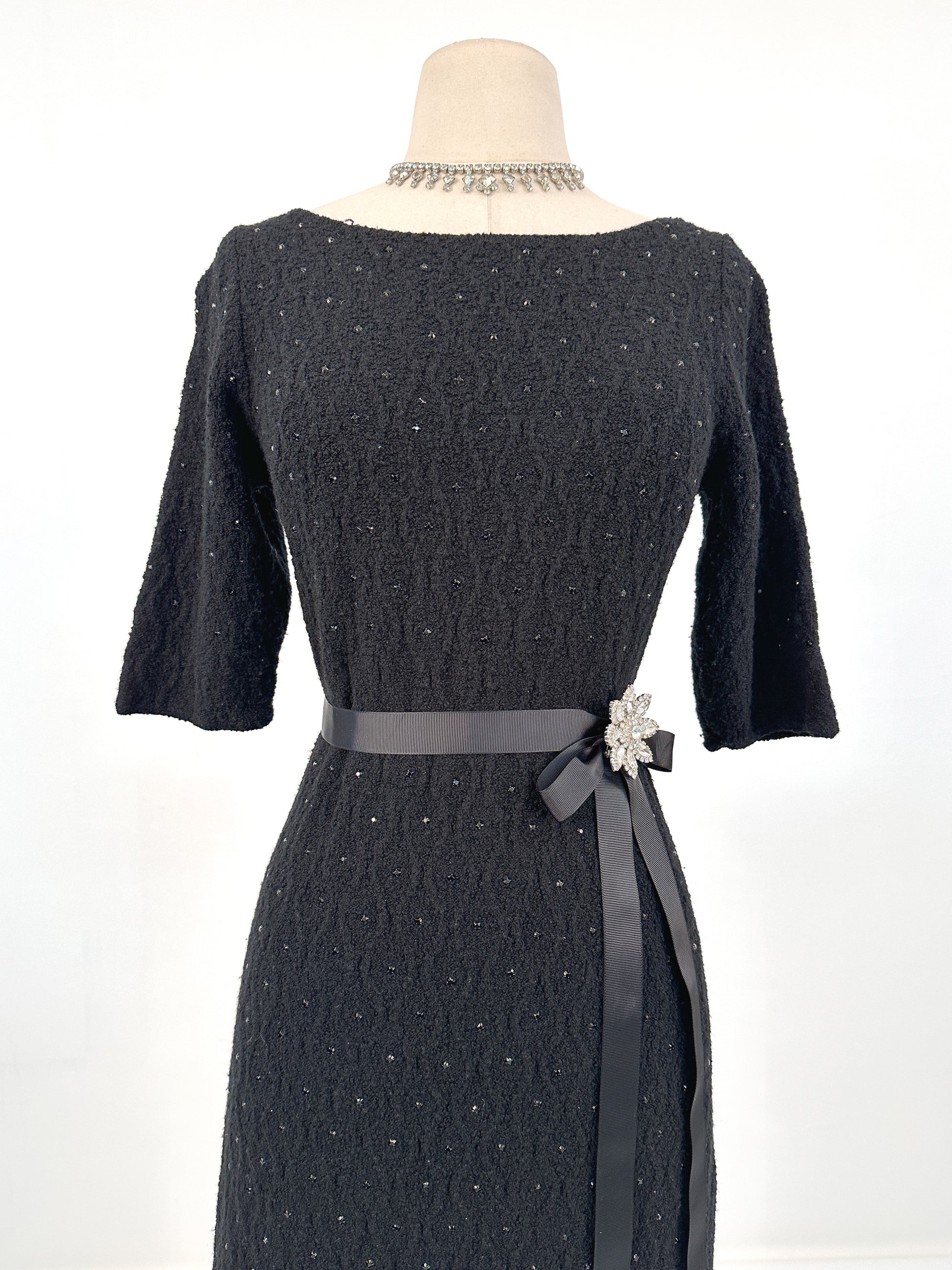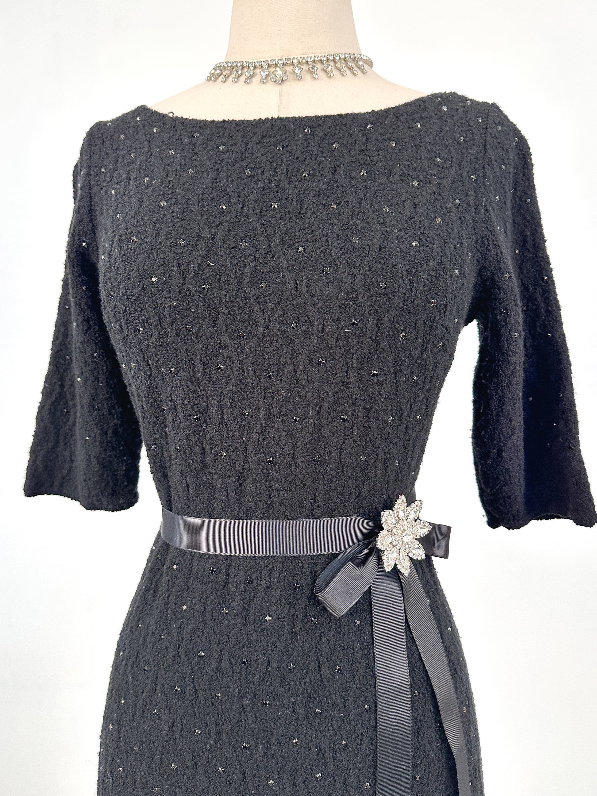 1950s Knit Dress with Black Rhinestones / Waist 30