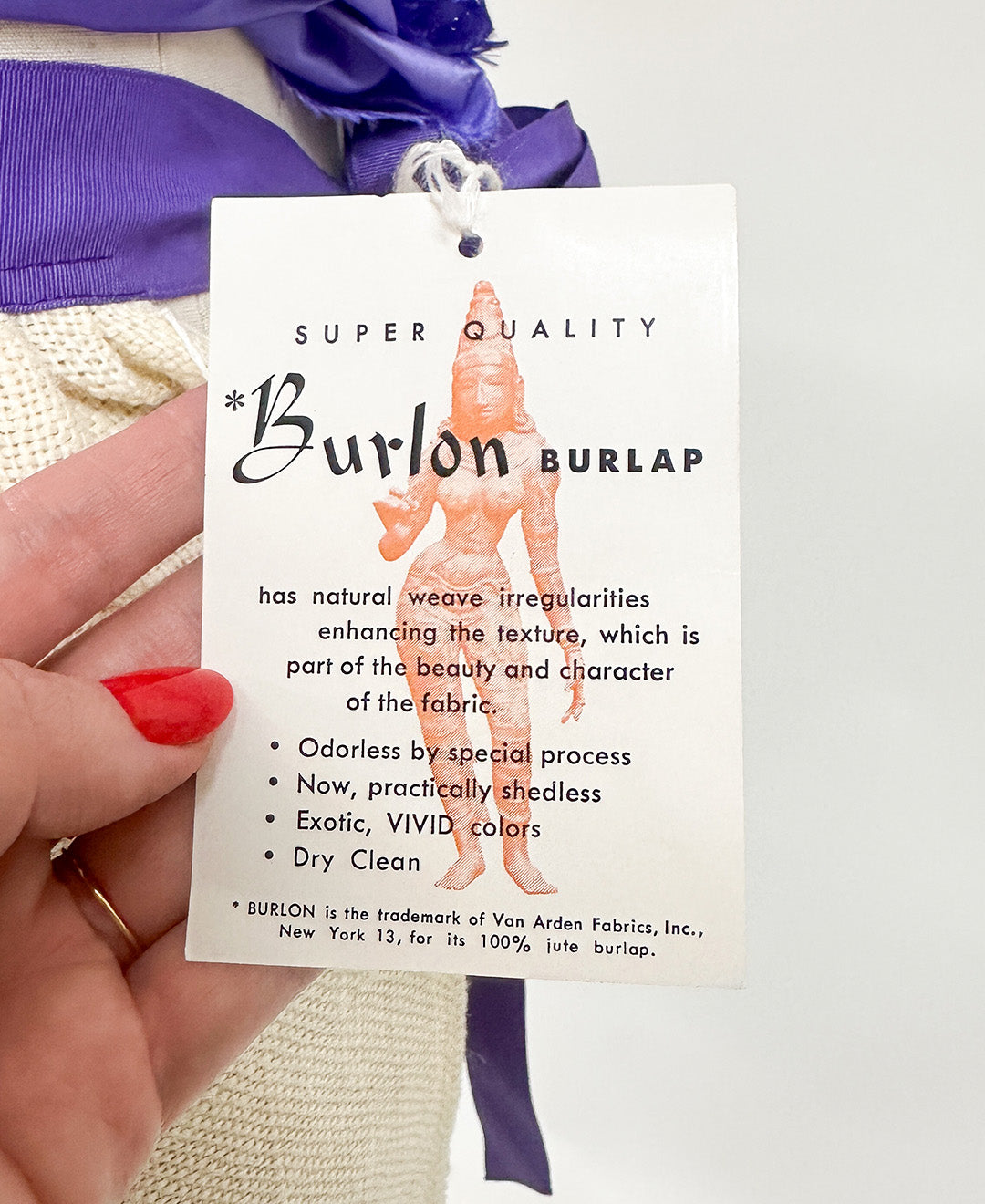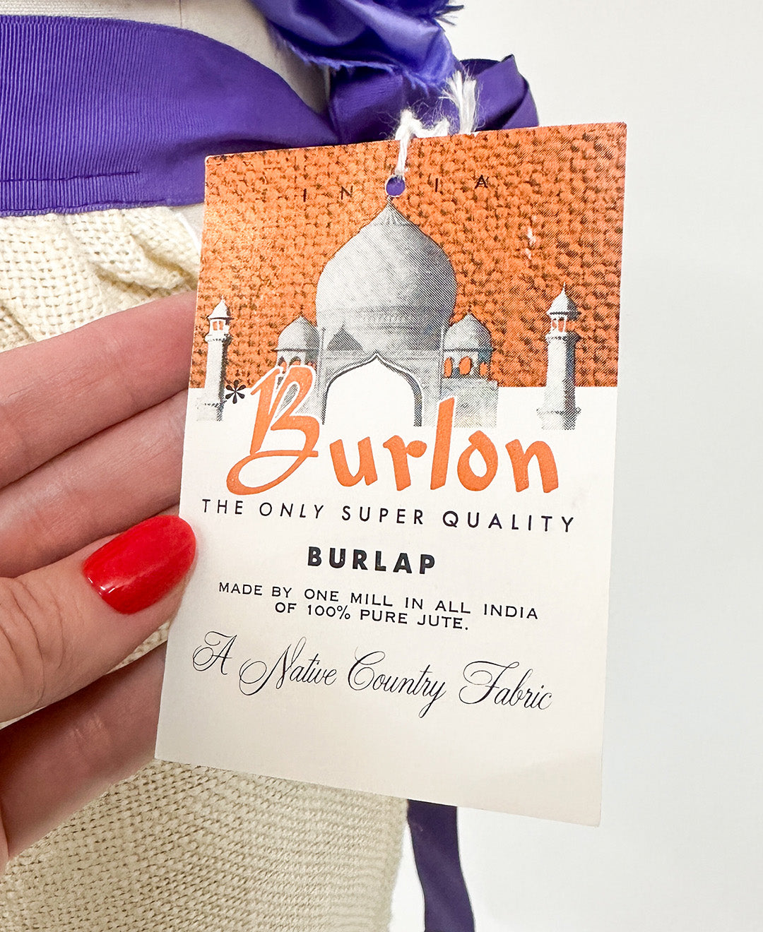 Step into the stylish side of mid-century kitchens with this 1950s MCM Burlap Apron, complete with a playful grape appliqué pocket. The textured burlap fabric and bold design reflect the era’s love of natural materials and whimsical motifs, making it as much a conversation piece as a functional kitchen accessory.