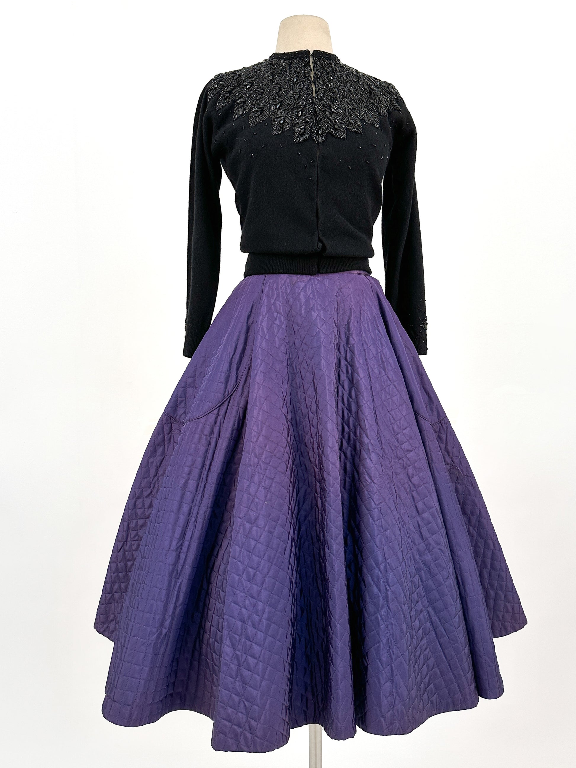 1950s Deep Indigo Quilted Circle Skirt / Waist 26.5