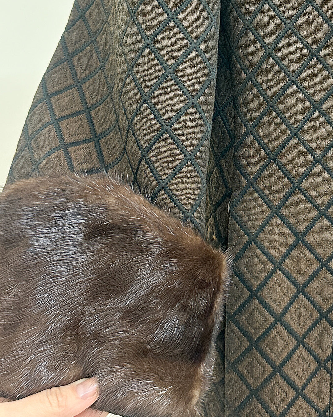 Rich, regal, and ready for winter in the city, The Park Avenue Snowfall Coat is a jacquard dream designed for elegant cold-weather nights. Its textured woven pattern catches the light like fresh snow, while the plush fur collar and cuffs add a luxurious warmth straight out of mid-century Manhattan. Tailored, structured, and irresistibly dramatic, this coat feels at home drifting past Bergdorf’s windows, stepping out of a taxi on Madison, or wandering through Central Park after the first dusting of snow.