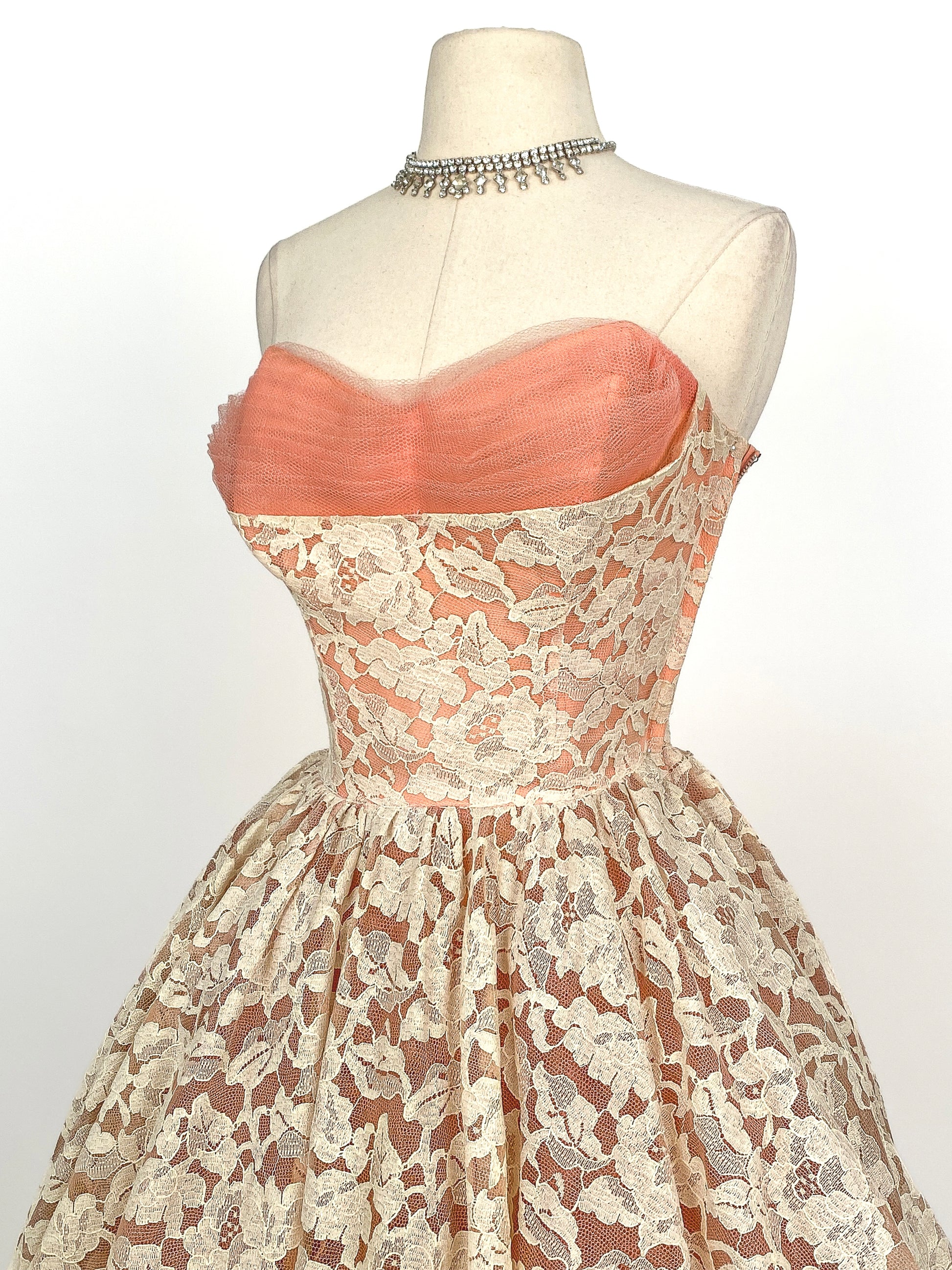 1950s Dreamy Lace & Tulle Party Dress / Waist 24