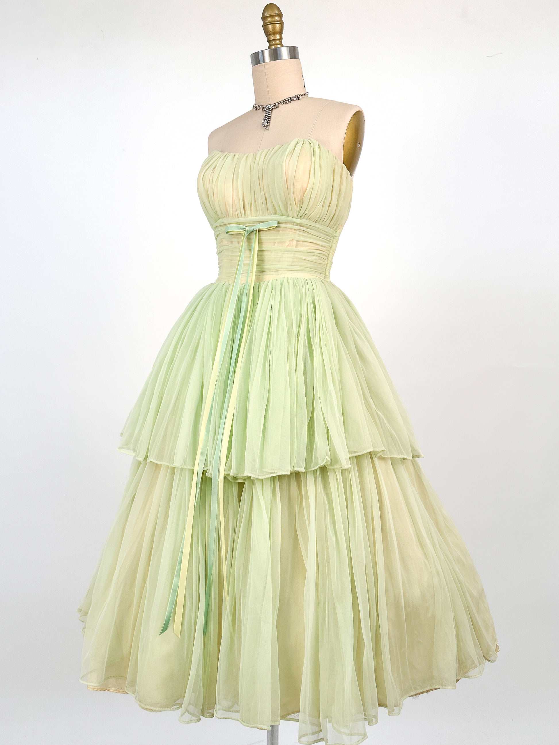 1950s Lemon and Lime Gauzy Chiffon Party Dress / Waist 24