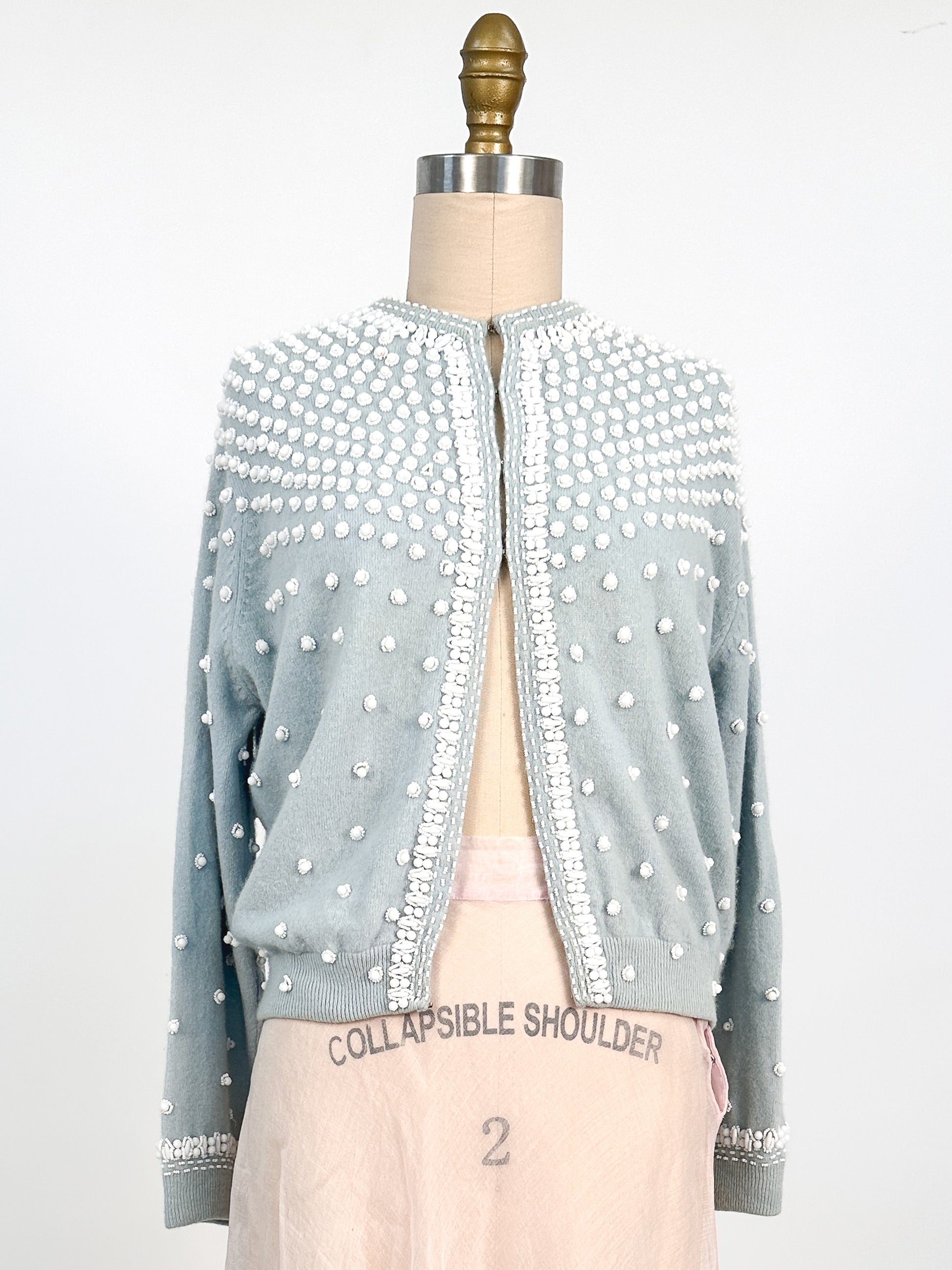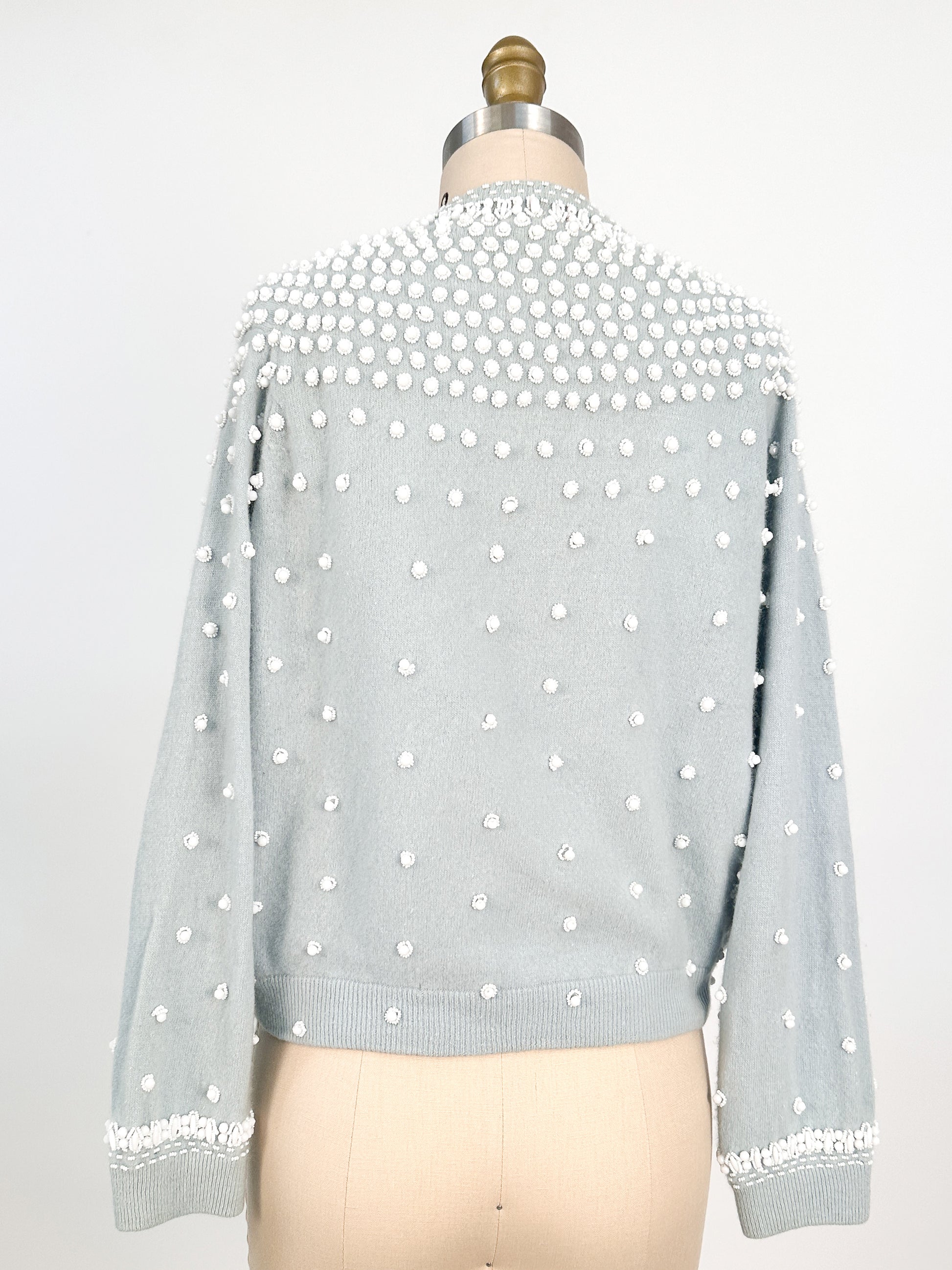 1950s Icy Blue Beaded Sweater / Fits up to a Bust 42-44