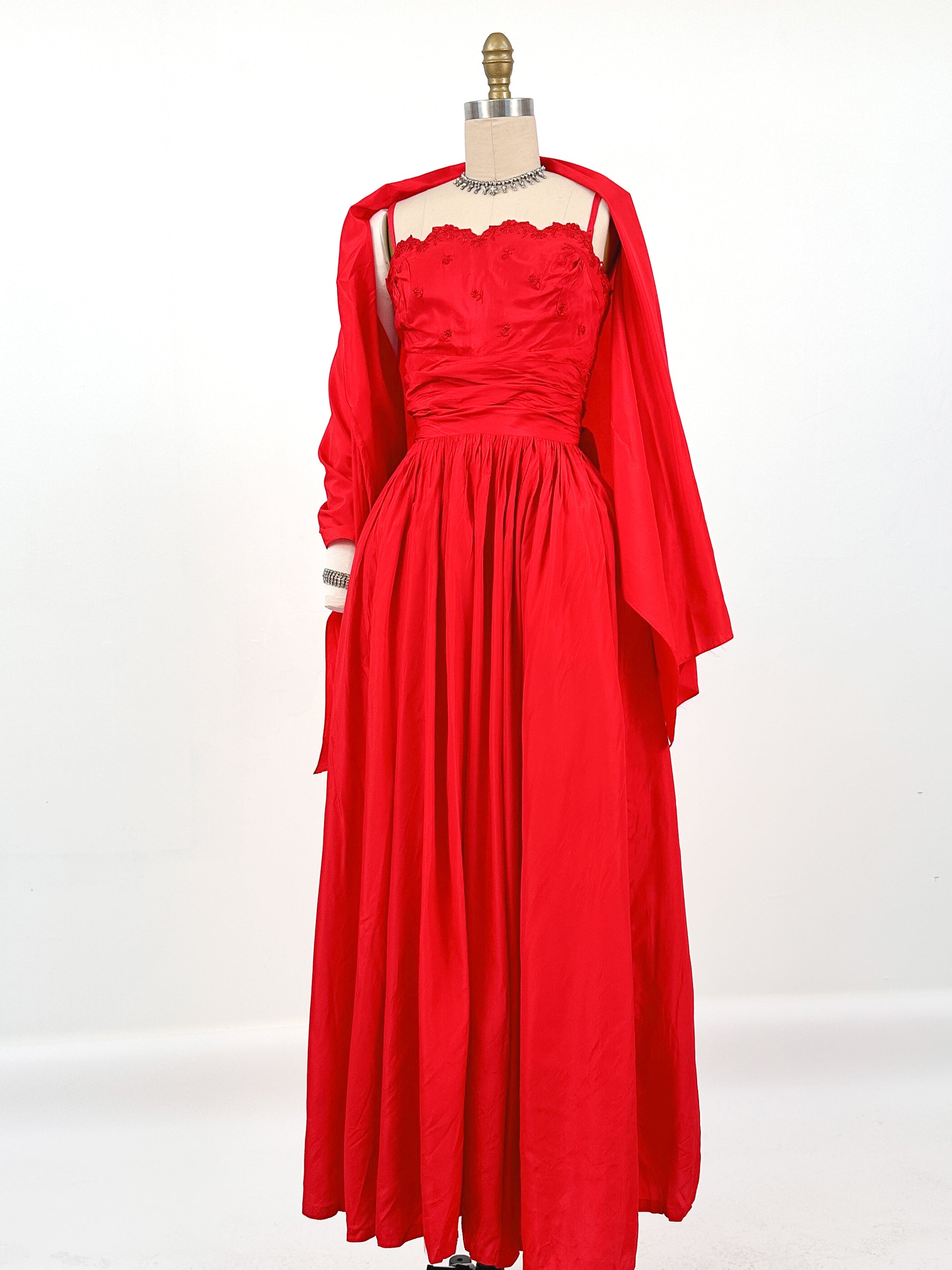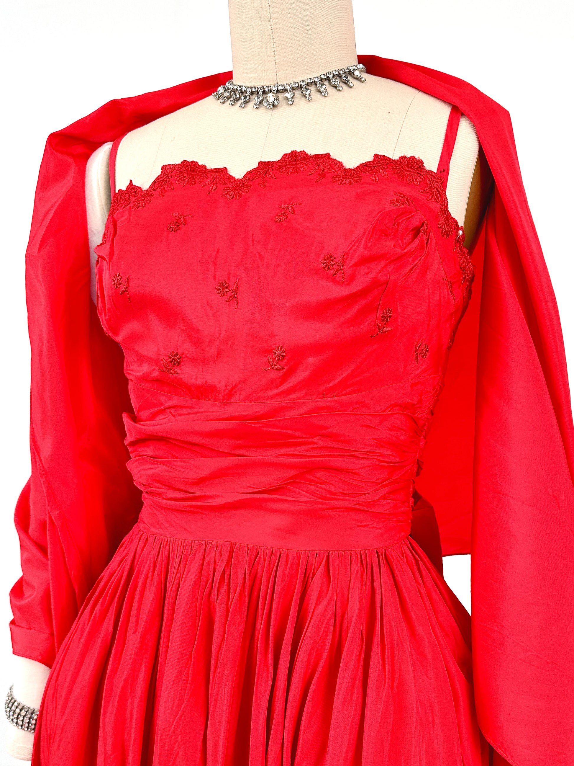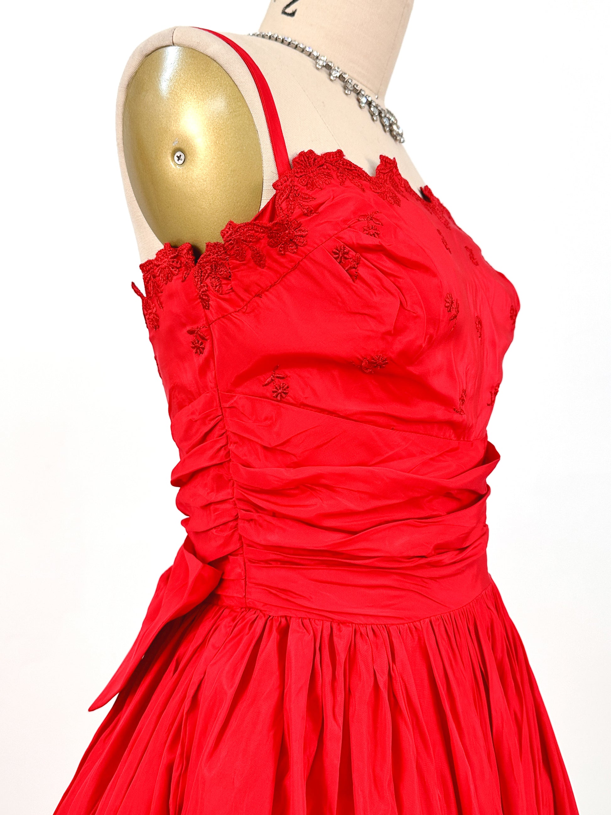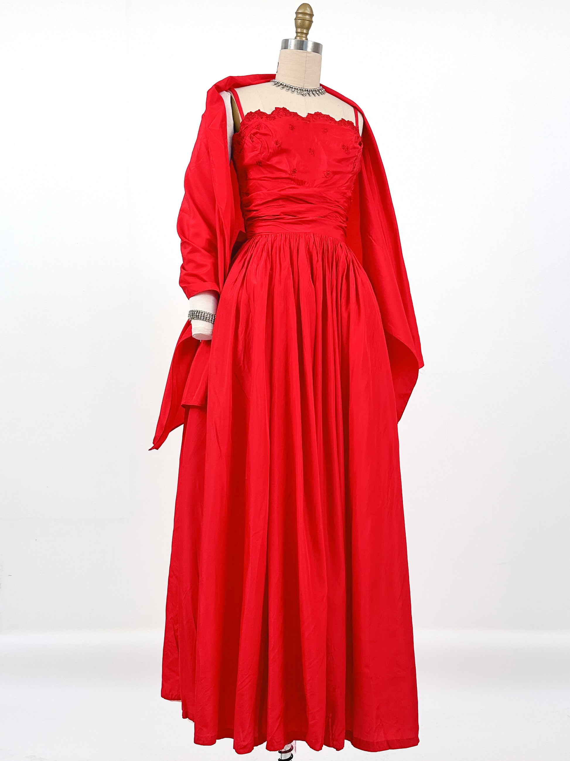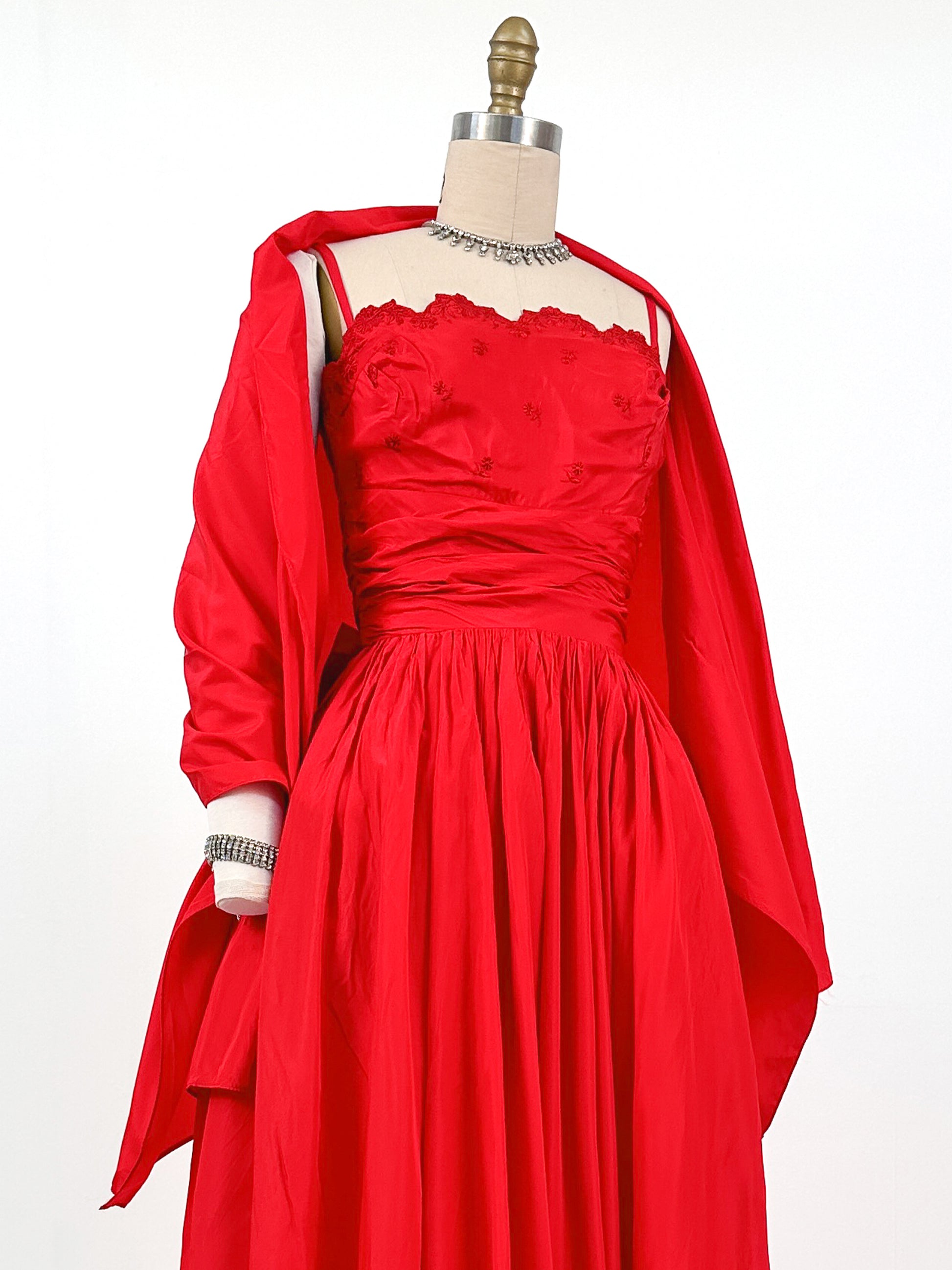 1950s Red Holiday Gown by Lorie Deb / Waist 24