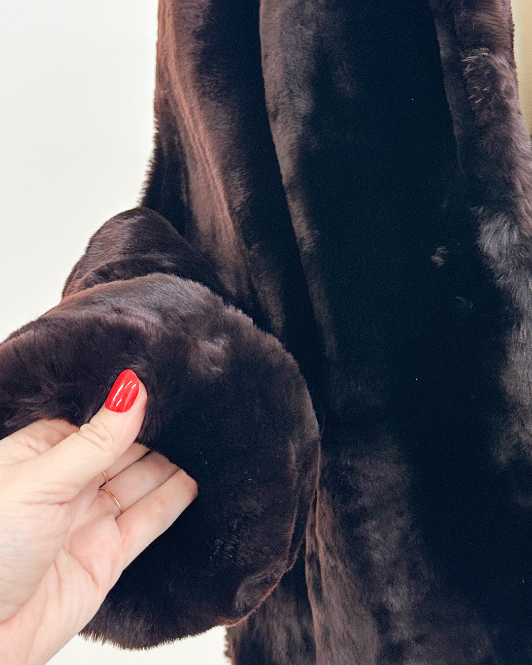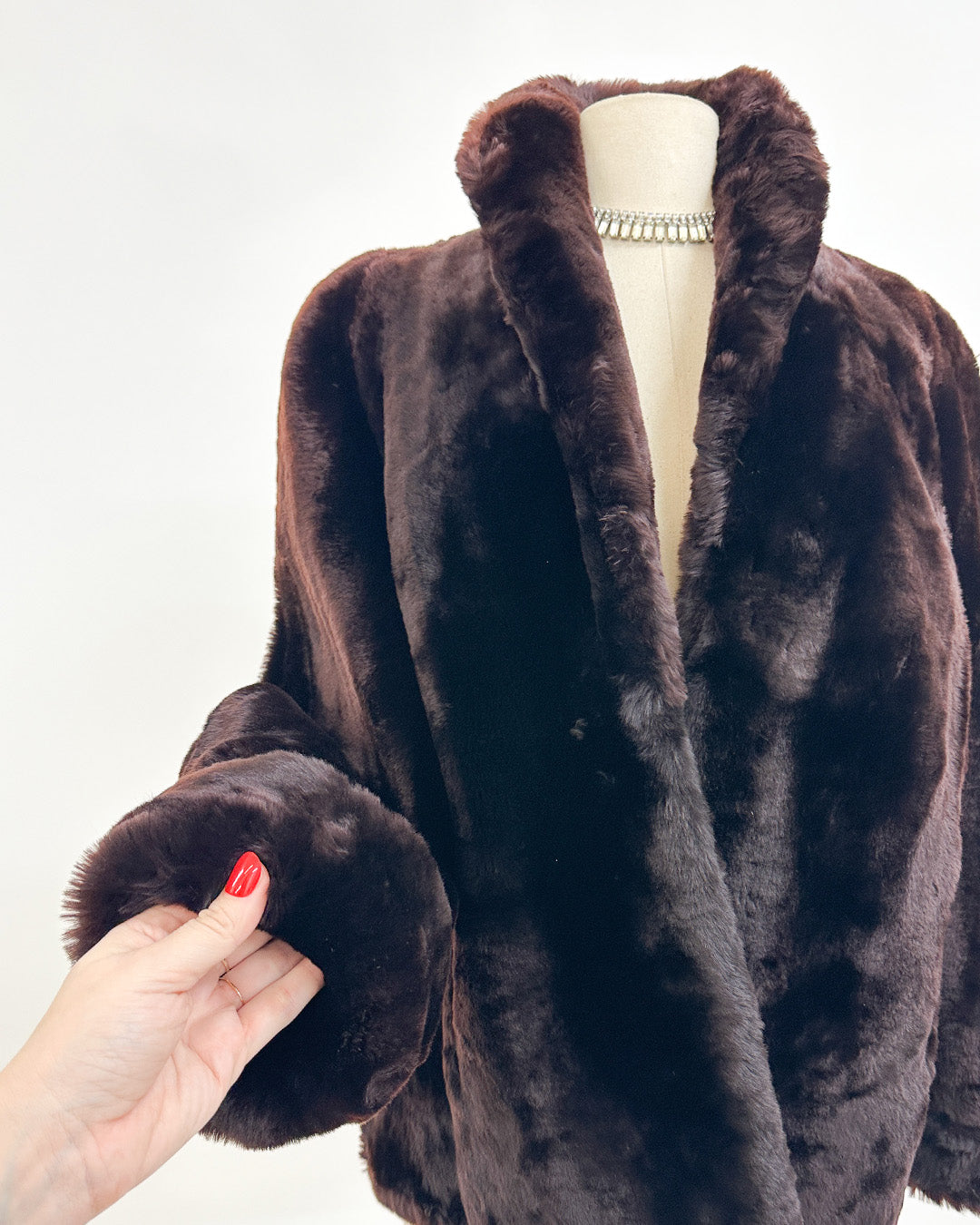 Step into 1950s sophistication with The Fifth Avenue Mouton, a luxe coat that radiates mid-century glamour. Crafted from rich, buttery mouton fur, this piece exudes warmth and elegance, perfect for crisp autumn mornings, park strolls, or evening cocktails along the avenues. The tailored silhouette, polished collar, and subtle sheen make it a statement of timeless style, while its supple texture and classic cut speak to a bygone era of New York refinement.