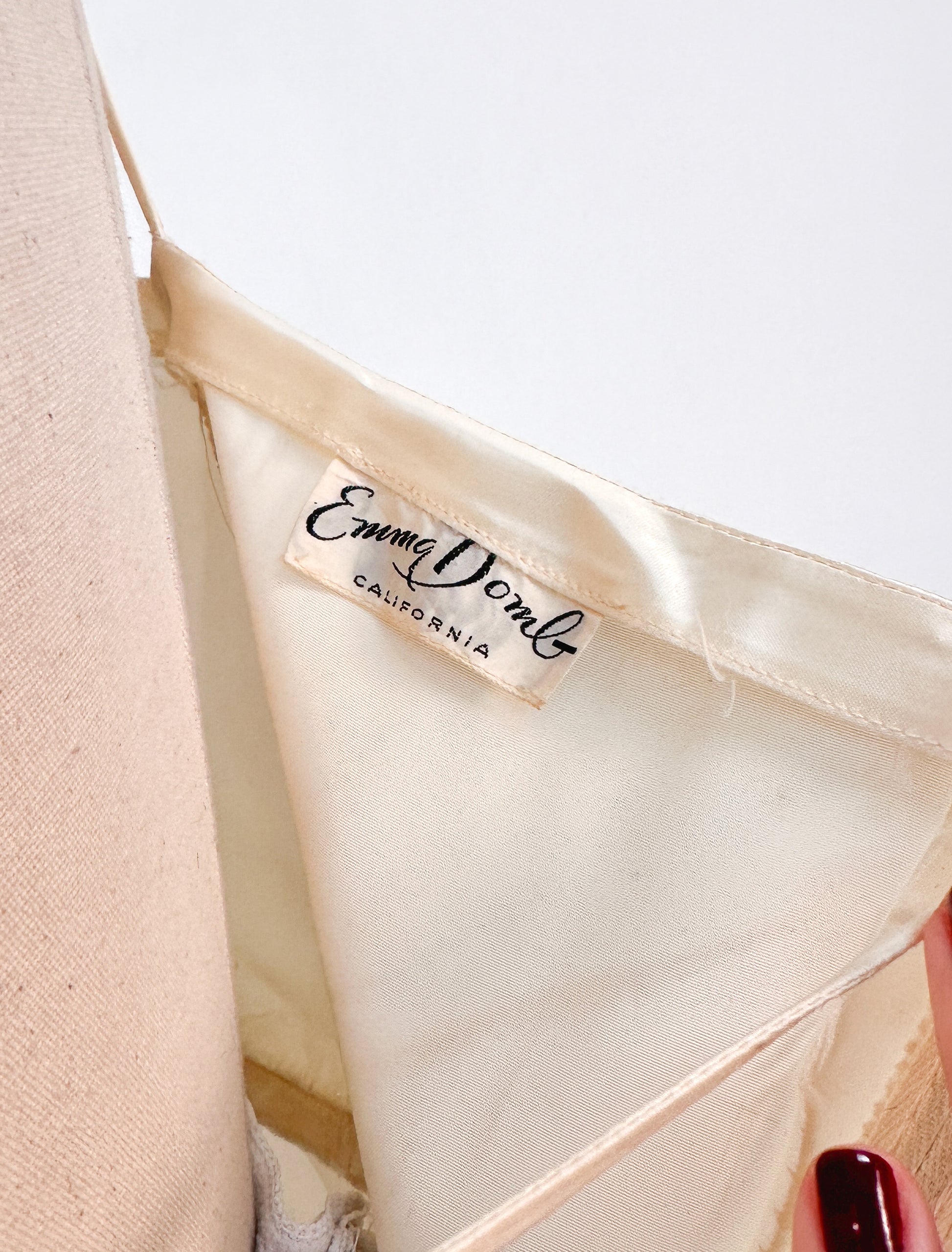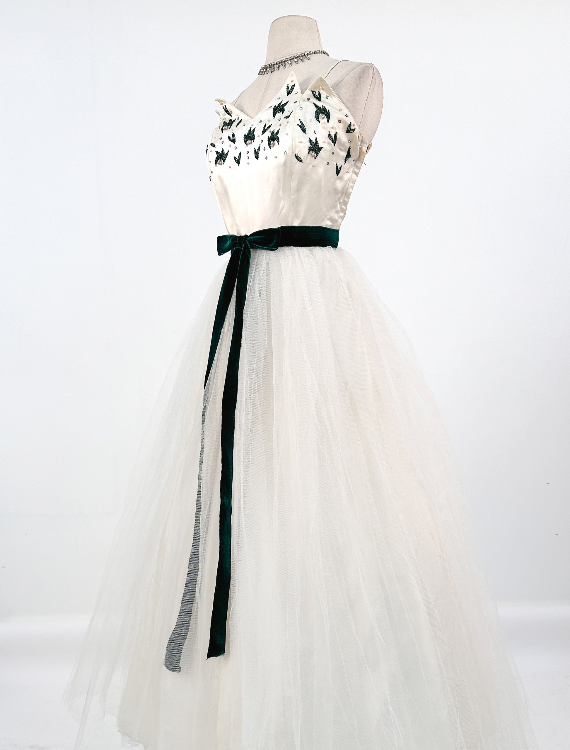 1950s White Christmas Satin & Tulle Gown by Emma Domb / Waist 28-30"