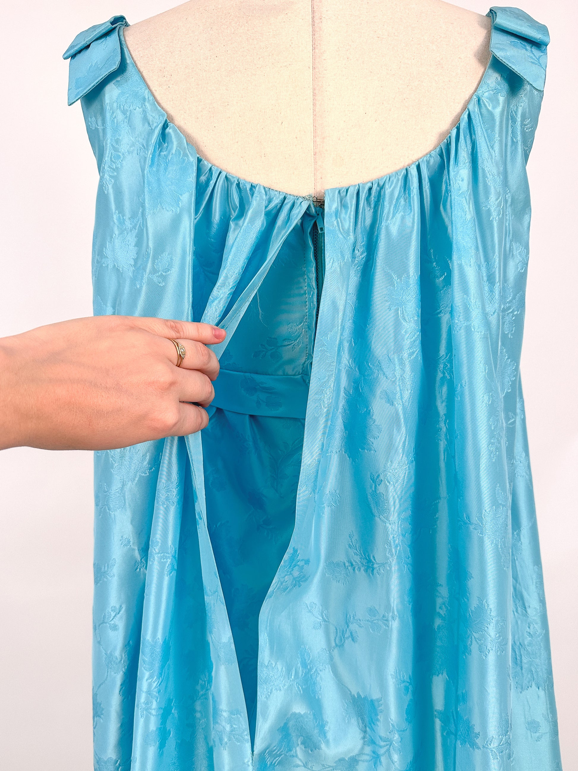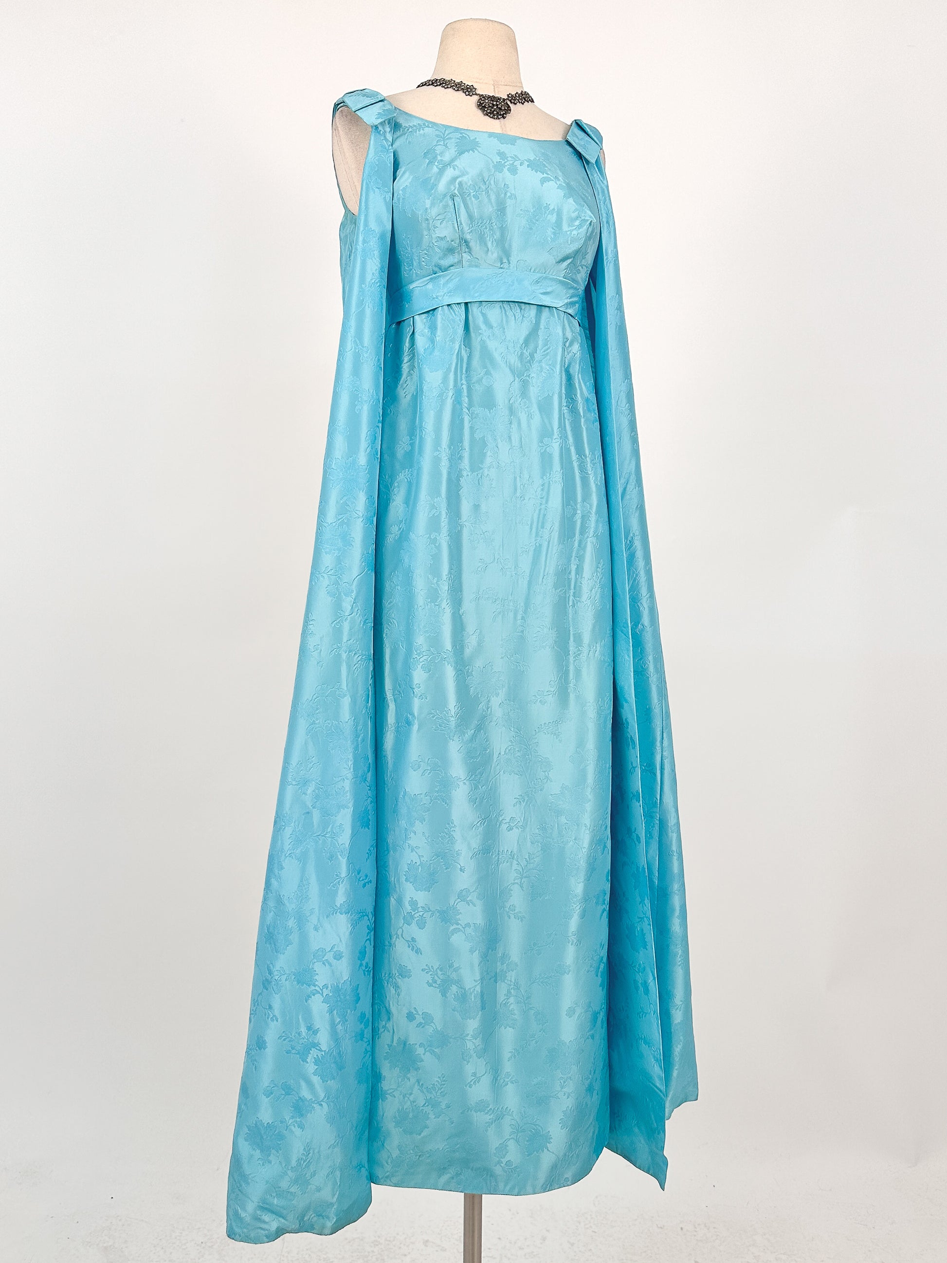 1960s Aquamarine Embossed Satin Evening Gown / Bust 32
