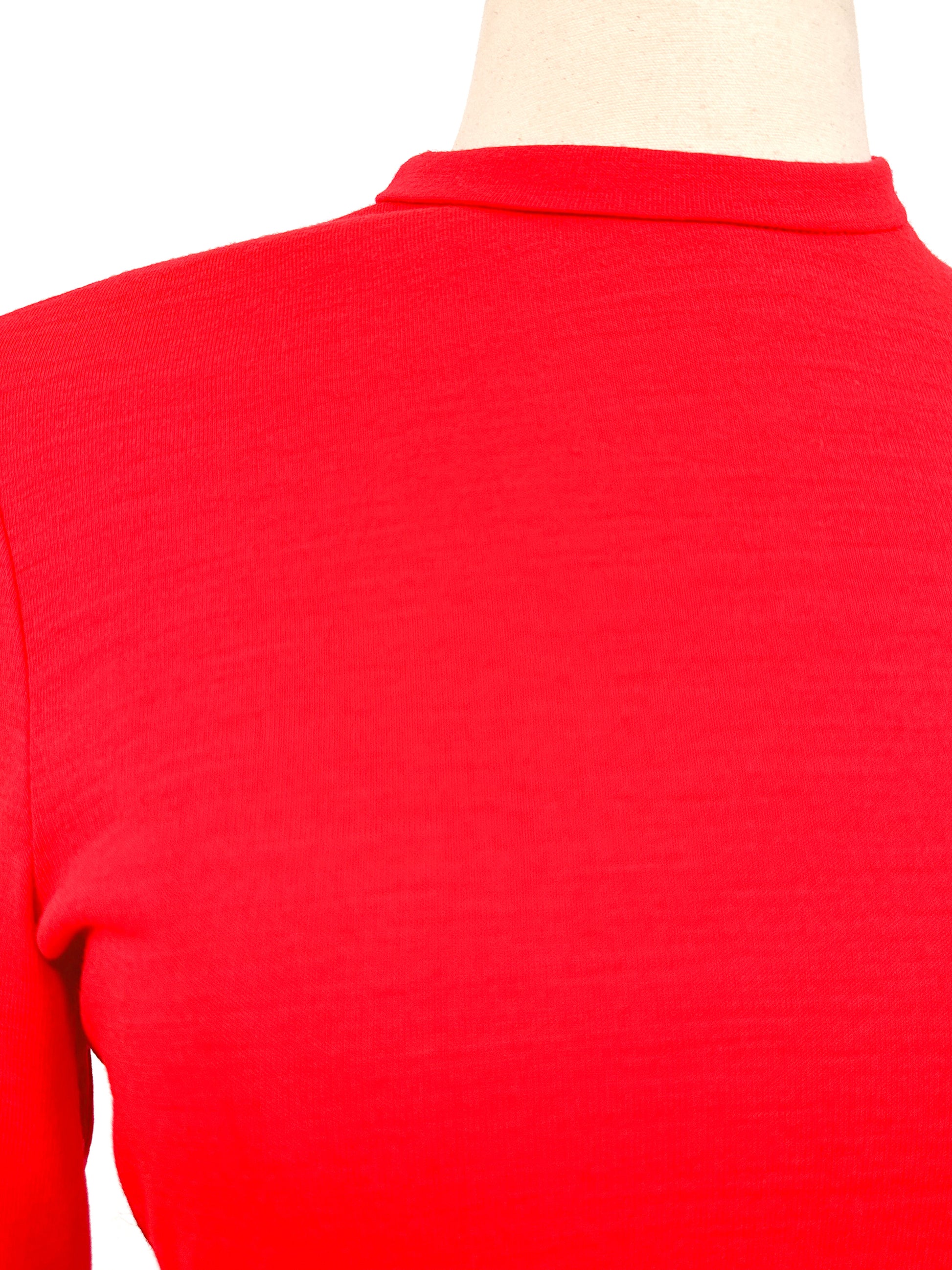 Condition: Very Good Vintage Condition, has a small patch on the side of the bodice, seen from the inside. The fabric of the dress photographs beautifulyl as a very holiday red, looks more reddish-orange in person.
