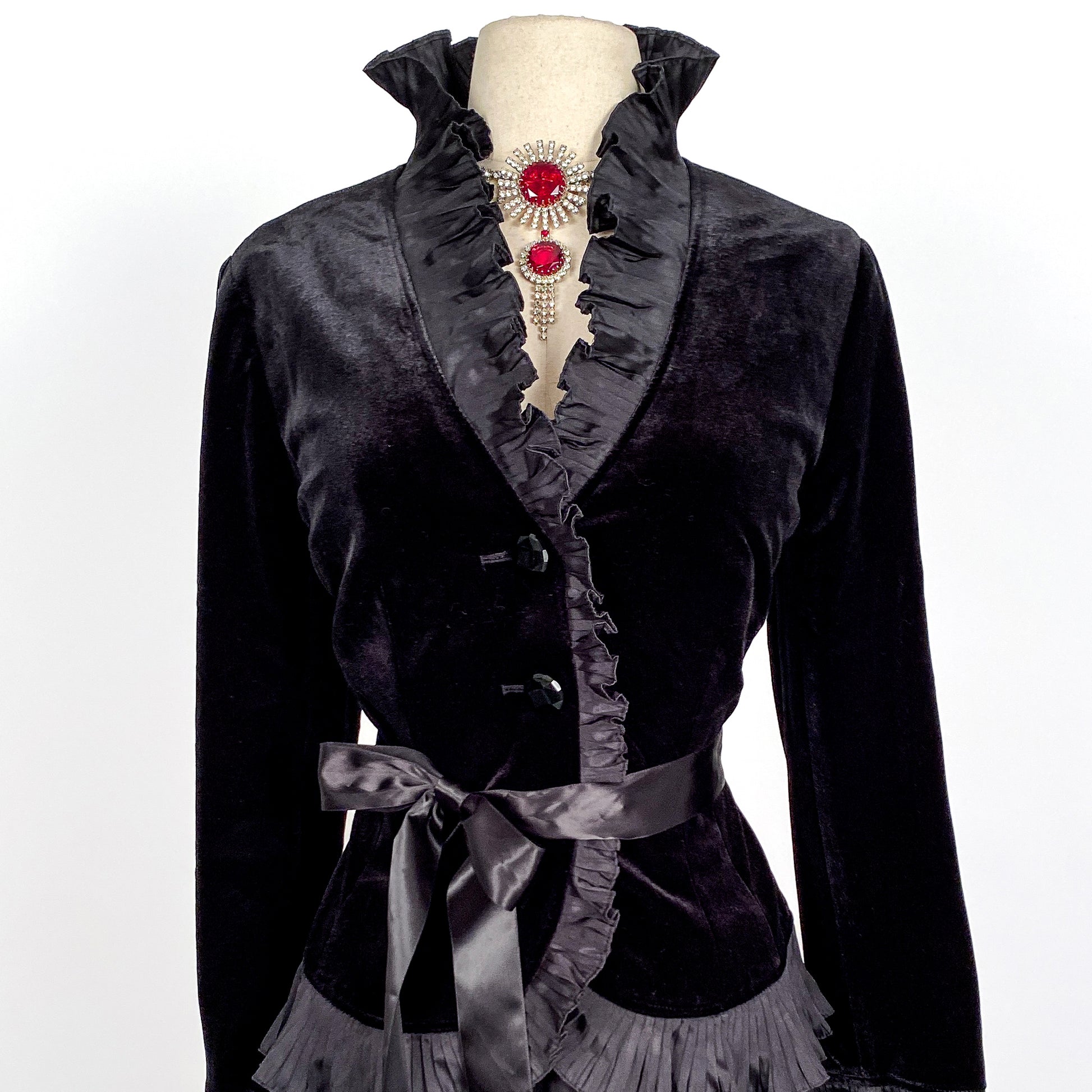 1980s Black Velvet Evening Top by Victor Costa / Bust 38