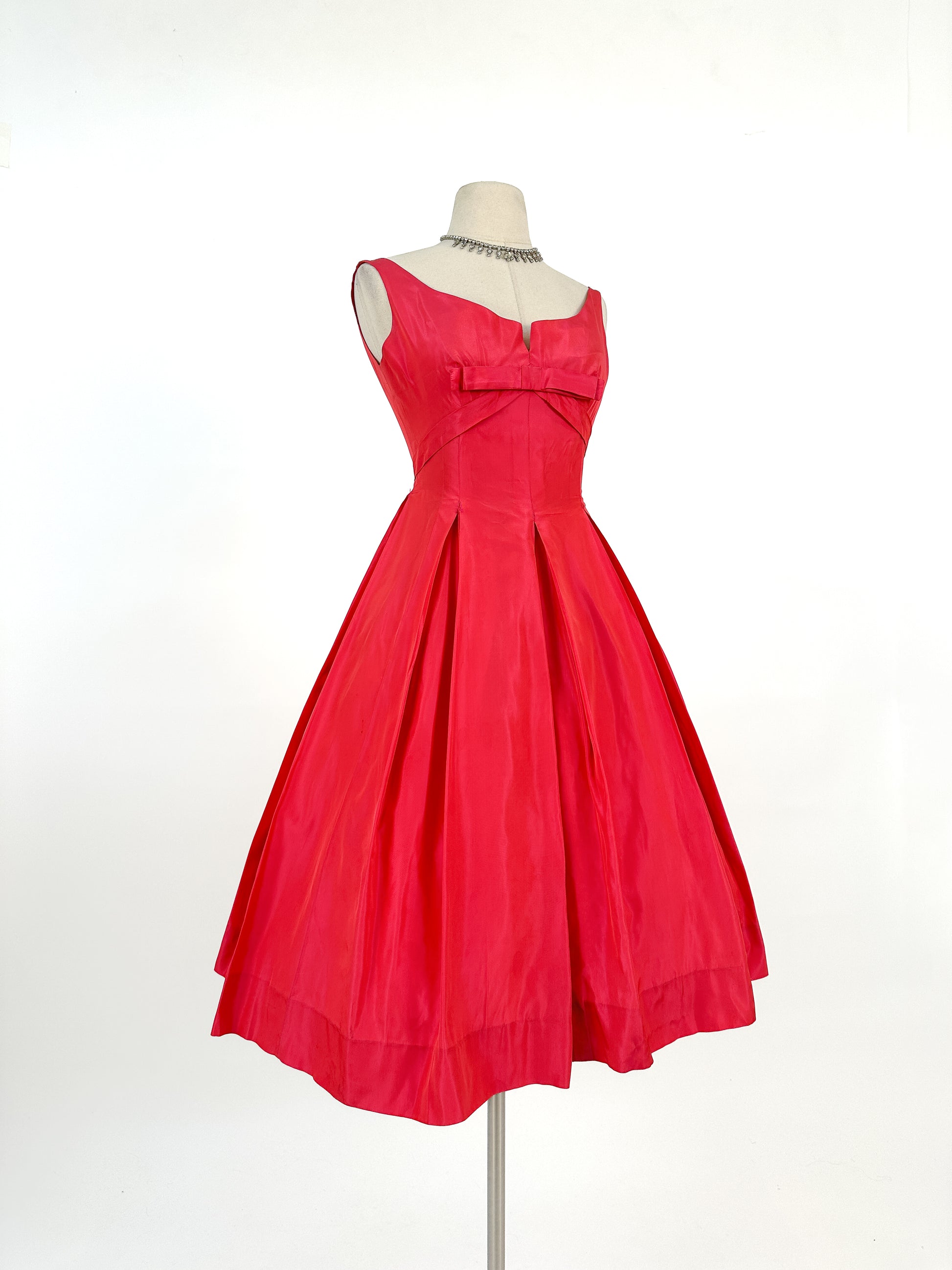 50s Stunning Fuschia Taffeta Gown by Jean Allen / Waist 24