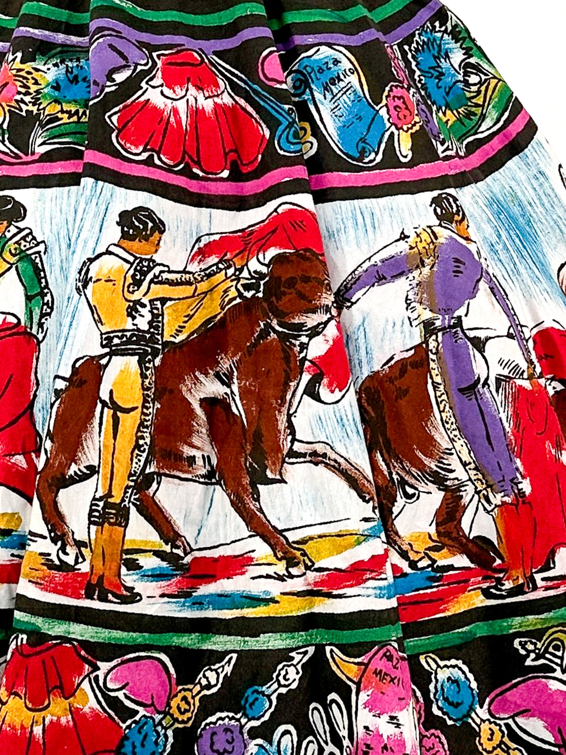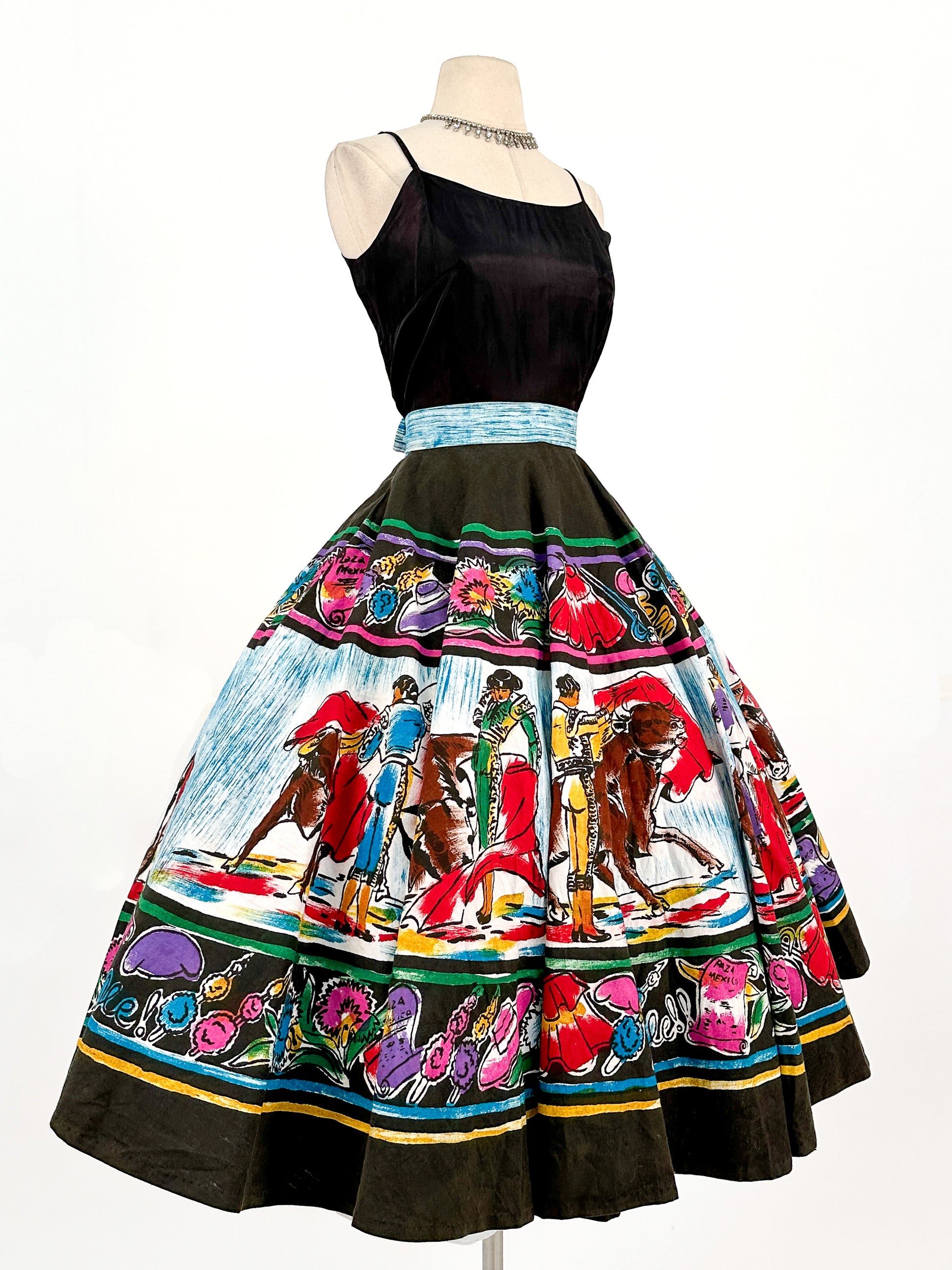 Rare 1950s Vibrant Hand Painted Matador Circle Skirt / Waist 26