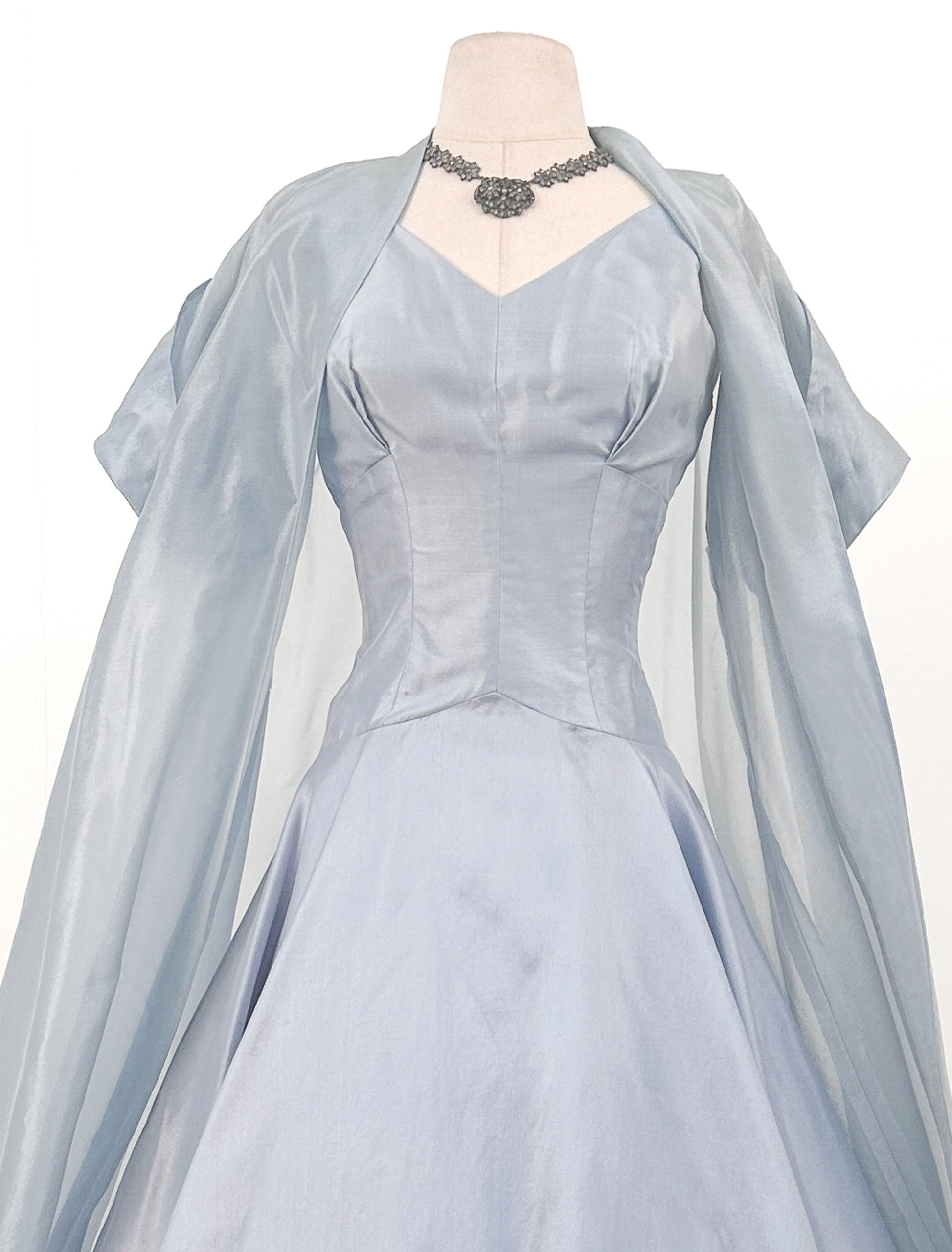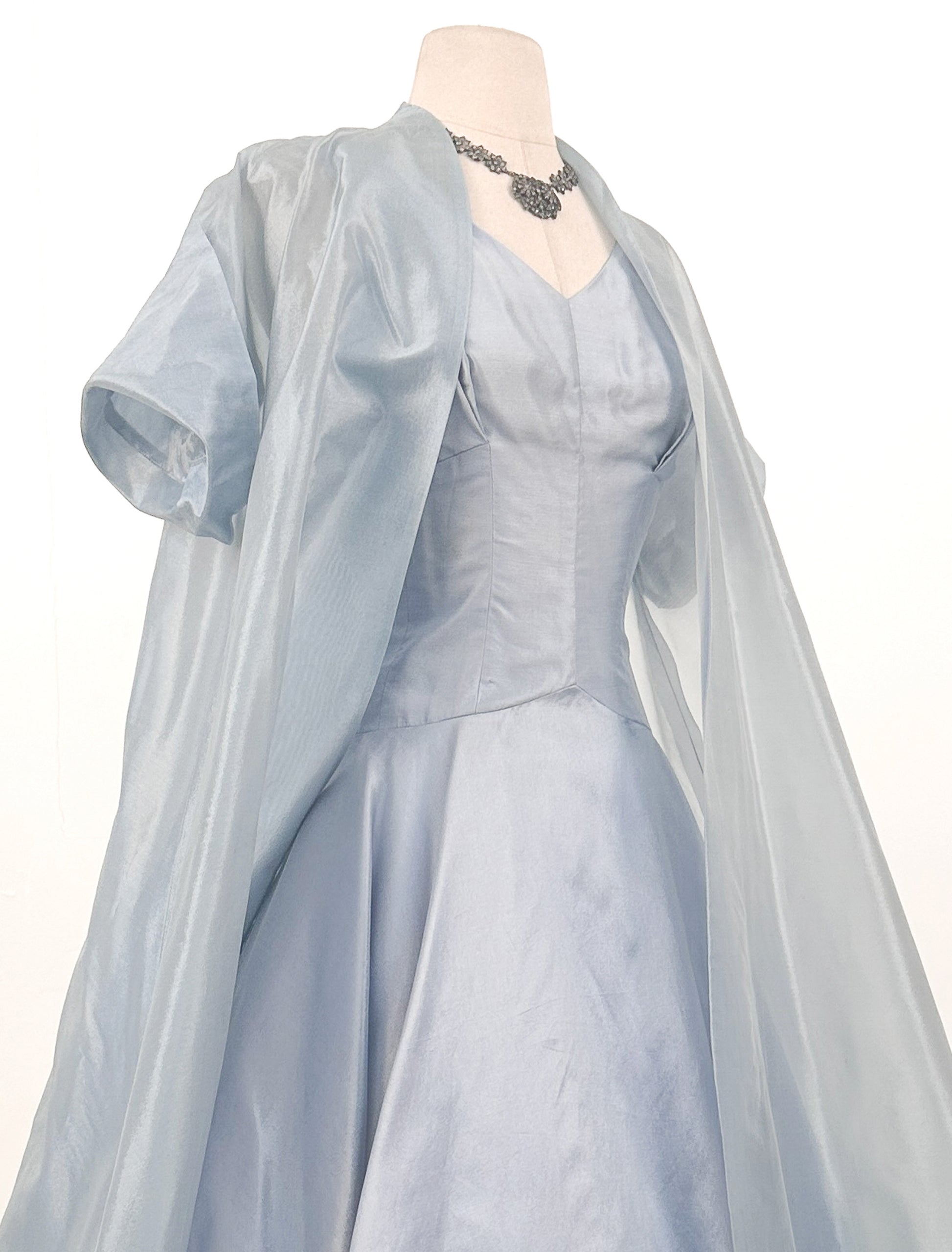 1950s Shimmering Light Blue Dress with Matching Coat / Waist 26