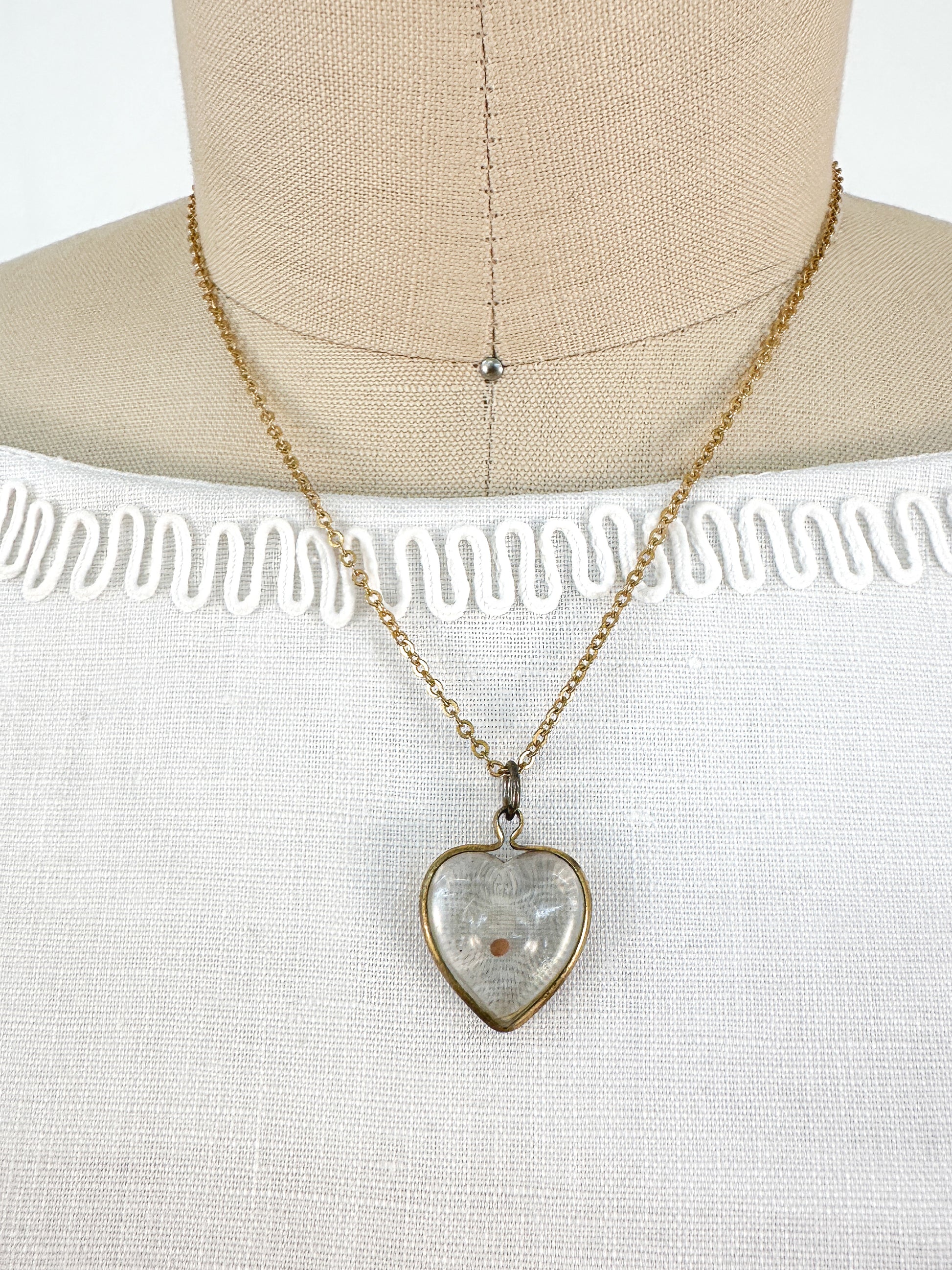 Heart pendant with mustard seed comes with matching tear drop earrings with a screw back.